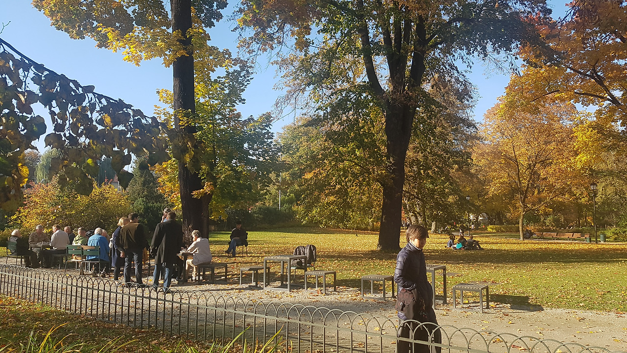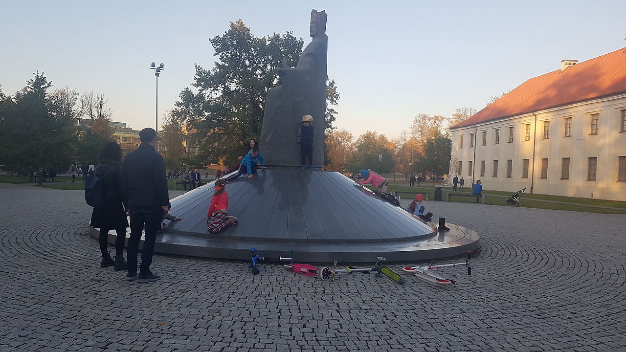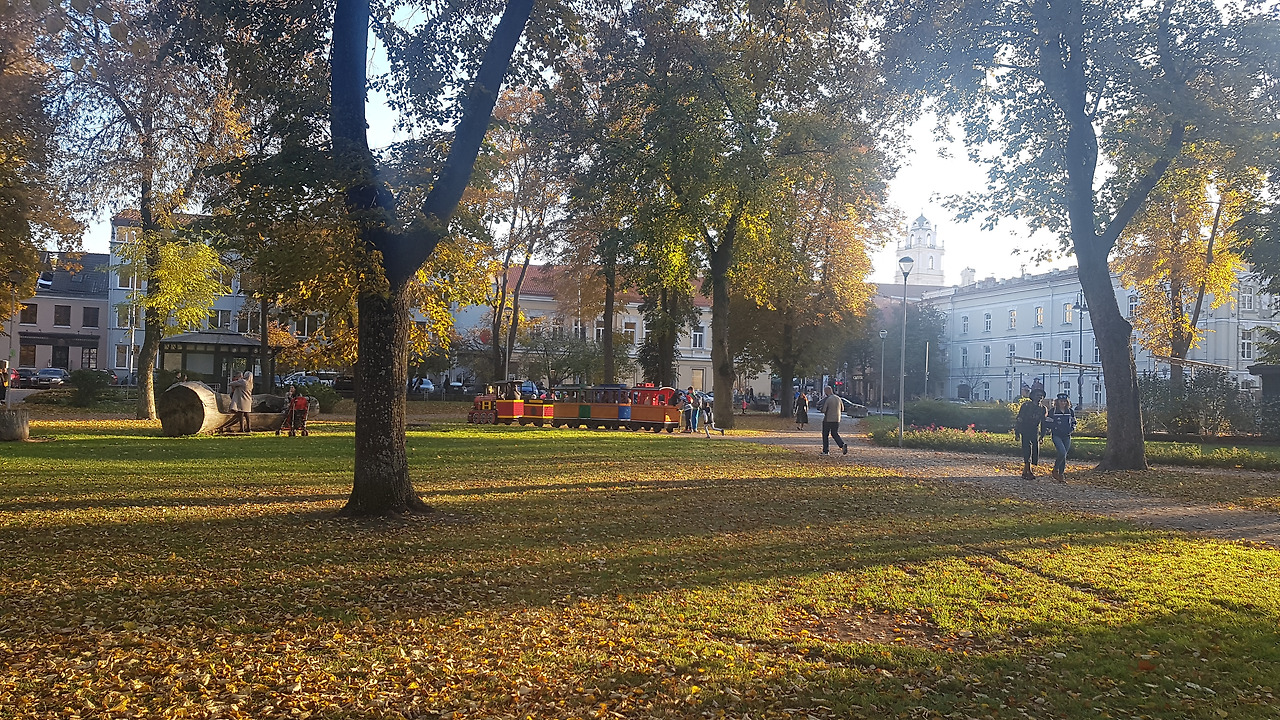 체스판이 그려져 있는 탁자, 거기에서 체스를 즐기는 사람들과 훈수 두는 사람들 그리고 구경꾼들.. 그들의 편안한 일상이 나에겐 그대로 멋진 풍경화다. 유모차를 끌고 나온 젊은 부모들 , 낙엽비를 만들며 뛰노는 아이들 , 그사이를 지나다니는 조그만 장난감같은 기차, 그 기차를 타고 즐거워하는 아이들과 사람들이 행복해 보였다. 다른 도시에는 관광객이 더 많아 보였는데 빌니우스에는 이 도시 사람들의 편안한 삶이 보였다.