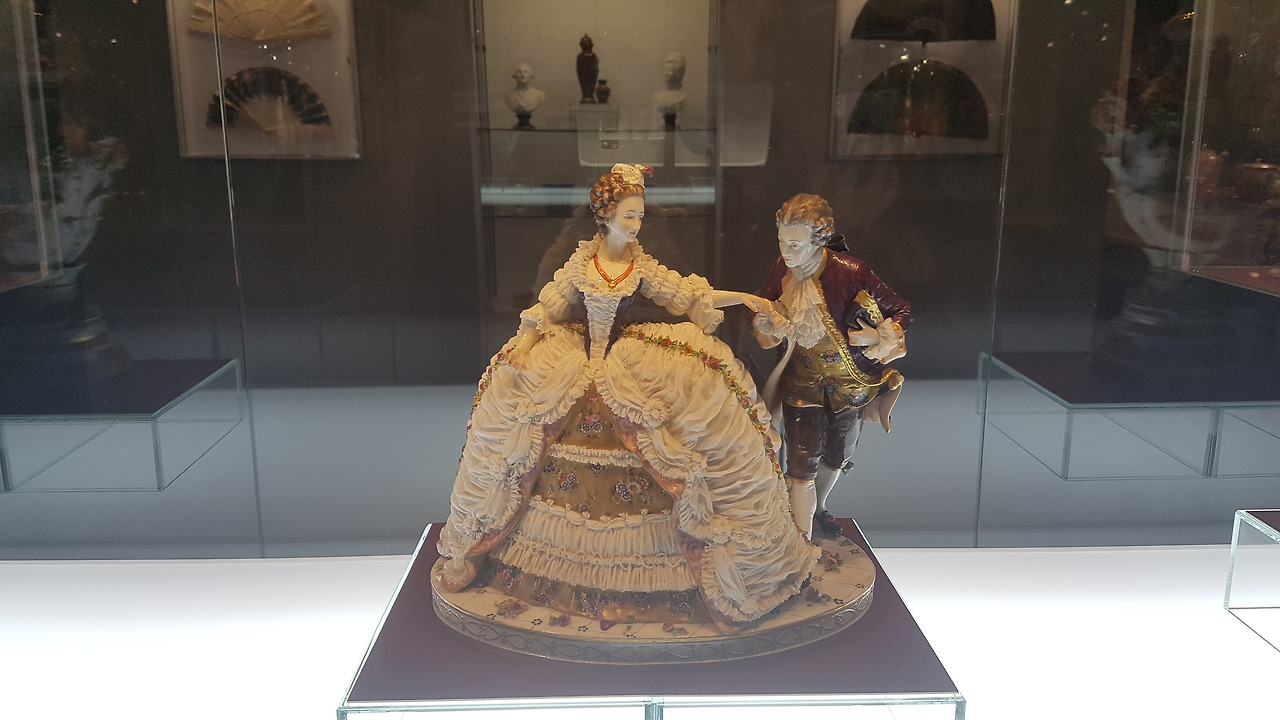 사람이 입던 옷과는 달리 도자기로 만든 화려한 장식품들은 방금 백화점 진열대 위에 있던 것 마냥 새 것 같다. 도자기 작품 속 여성의 옷차림이 남성보다 훨씬 화려한 데다 남성이 여성 옆에서 살짝 무릎을 굽힌 모습을 보면 여성이 남성으로부터 받았던 차별을 상상하기 힘들다.