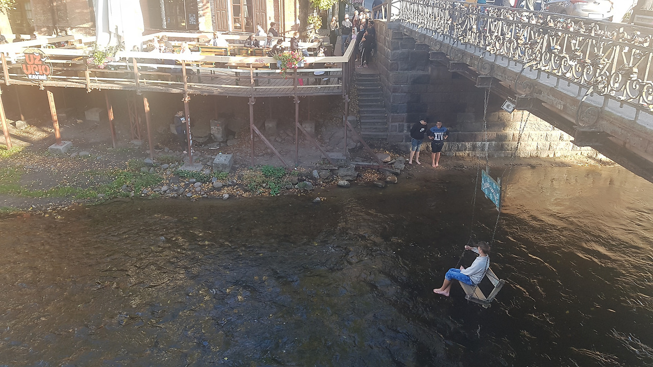 어느덧 길은 공원을 빠져나와 분위기 있는 카페들이 이어진 언덕길로 향하고 언덕은 작은 개울을 건너는 다리와 이어진다. 다리 아래로 예쁜 카페를 다시 내려다보는데 작은 개울에 띄워놓은 그네를 타고 즐거워하는 청년들이 눈에 띄었다. 어딜 가나 재미로 넘쳐나고 웃음소리가 끊이지 않는 이곳이 도시 한가운데라는 것이 믿기지 않는다.