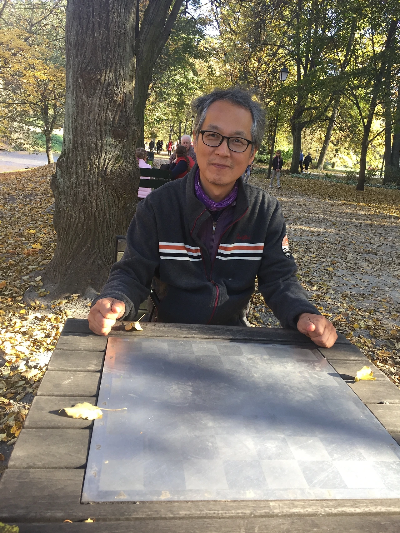 남편에게 나도 체스판에 끼어들어 구경하다 돌아가는 맘 편한 동네 사람처럼 보이고 싶다고 말했고 남편이 그렇게 생각하며 사진을 찍어 주었다.