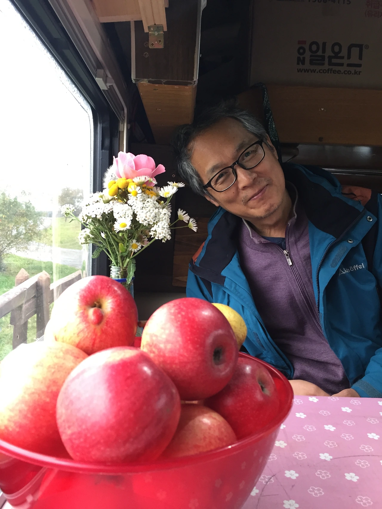 바람님은 지금 나의 요가 공간을 만들어 주기 위해서 노력하는 중이다. 작은 공간에서 스트레칭을 제대로 못해서인지 요즘 오른쪽 다리가 심상치 않게 아팠는데 좁은 통로에 요가매트를 깔고 허리 스트레칭을 하고 나니 좀 나아진 것 같았다. 차 안의 작은 통로에 침상 지지를 위한 나무토막이 있어서 그거라도 없으면 좀 편할 것 같다고 말했더니 바로 아이디어를 생각해내어서 해 주는 것이다. 요가매트도 아예 통로에 맞게 재단해 놓으니 훨씬 깔끔하고 아늑하다.