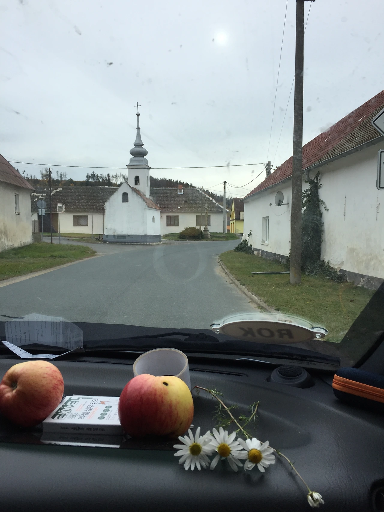 그러나 막상 가져온 것은 고작 세 송이. 그것도 한 송이는 캐는 도중 나에게 시달려 바로 시들어버렸다. 가녀리게 생긴 꽃이라고 우습게 볼 것이 아니었다. 땅에 붙어있으려는 힘이 어찌나 세던지 꽃의 모양을 잘 살리면서 꺾는 것은 힘들다. 그래도 우리가 수확한 사과들과 카모마일 꽃향기로 우리 차는 훨씬 풍요로워졌다. 게다가 숙소에 도착해서 점심을 먹을 수 있도록 여유로운 시간!.