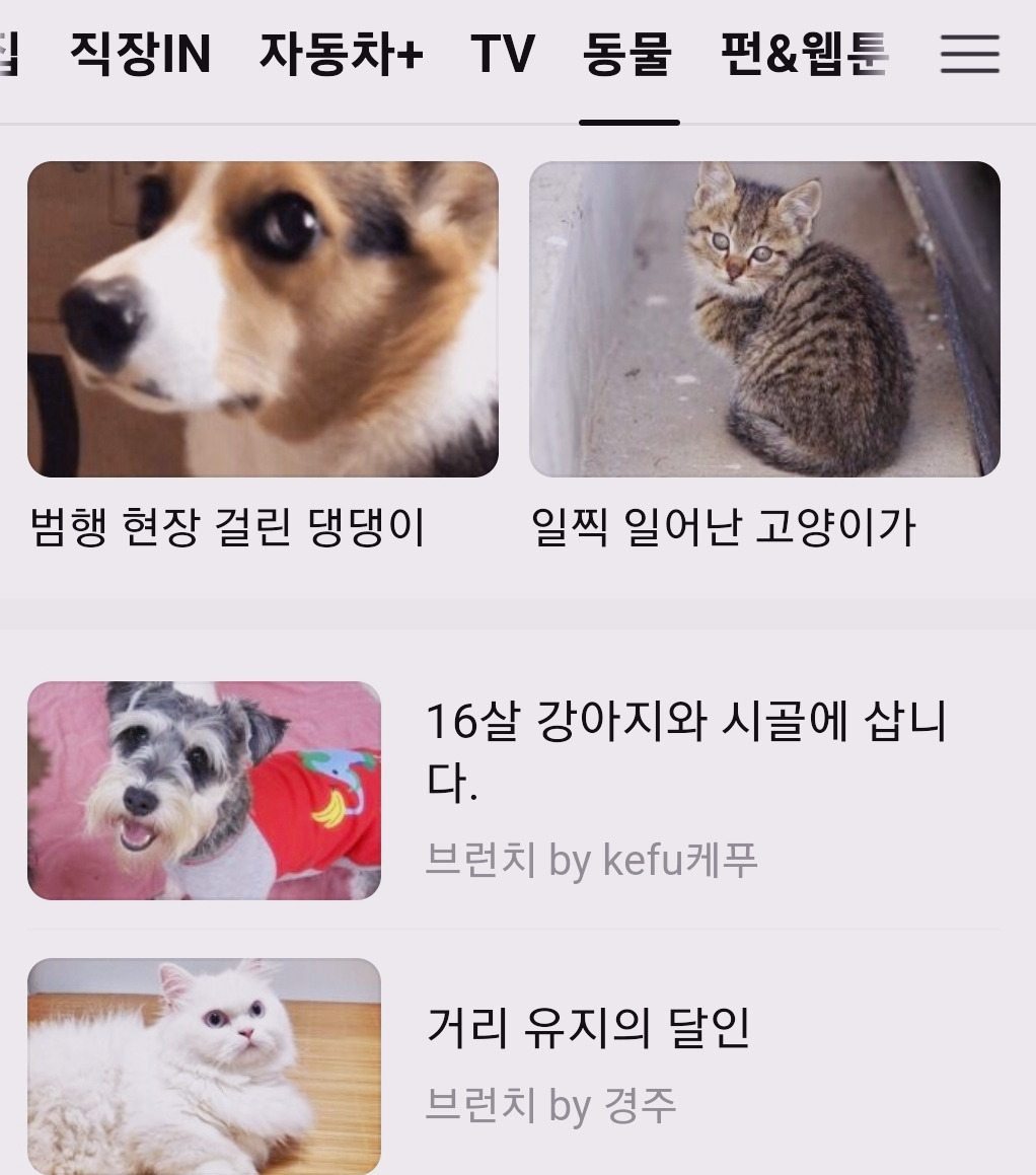 이번 노출은 다음의 동물 탭이었다.