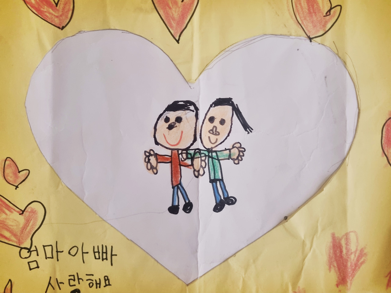 아들이 우리를 그려준 그림. 도대체 내 코는 왜 저런 걸까?