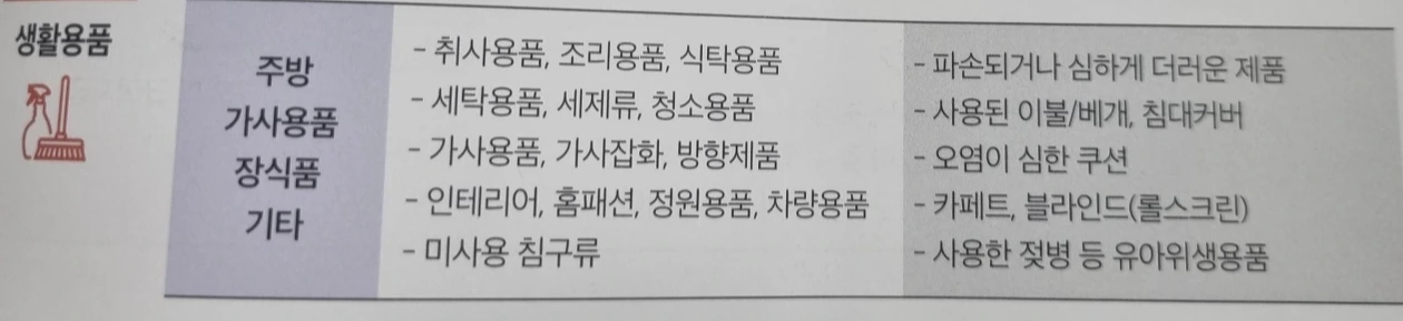 기증 가능 물품 안내 생활용품