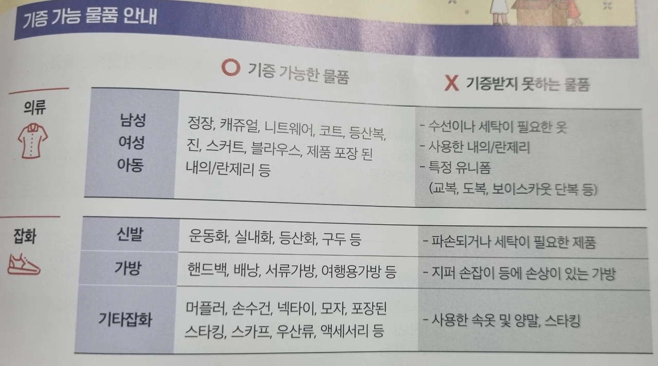 기증 가능 물품 안내