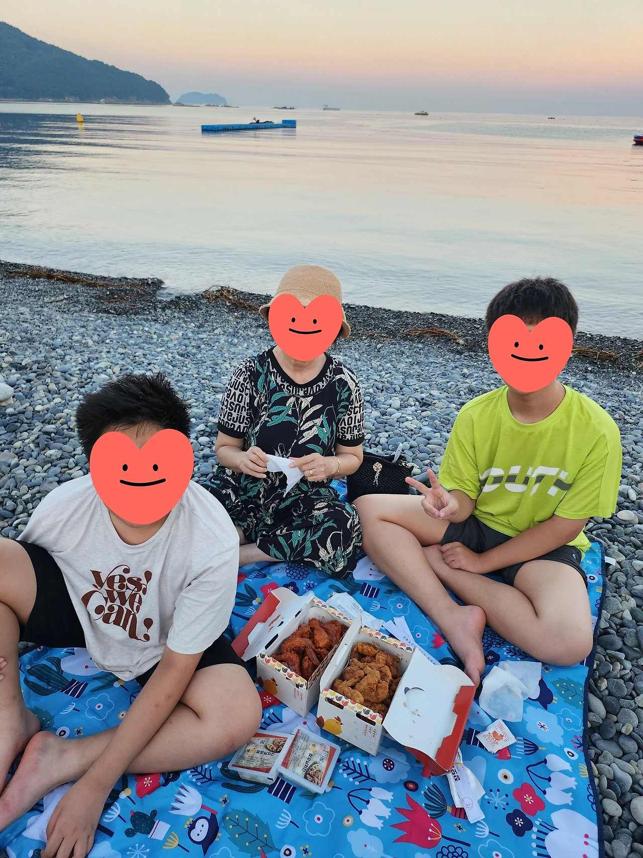 그리고 아이들에게 해수욕장에서 통닭을 시켜 먹는 추억을 주고 싶었다. 우리는 어렸을 때 모래사장에서 물놀이 후에 허기진 배를 달래고자 돗자리를 깔고 맛있는 통닭을 먹고 시원한 음료수를 마시며 그렇게 한참을 놀았던 기억이 있다. 아이들도 처음은 아니지만 외할머니와 바다에 와서 그런 추억 하나 사진 하나 쯤은 남기면 좋을 것 같아서 이 지역의 통닭집으로 전화를 했다. 좋은 경치와 함께 통닭을 먹으니 그 맛이 더 일품인 듯했다.
