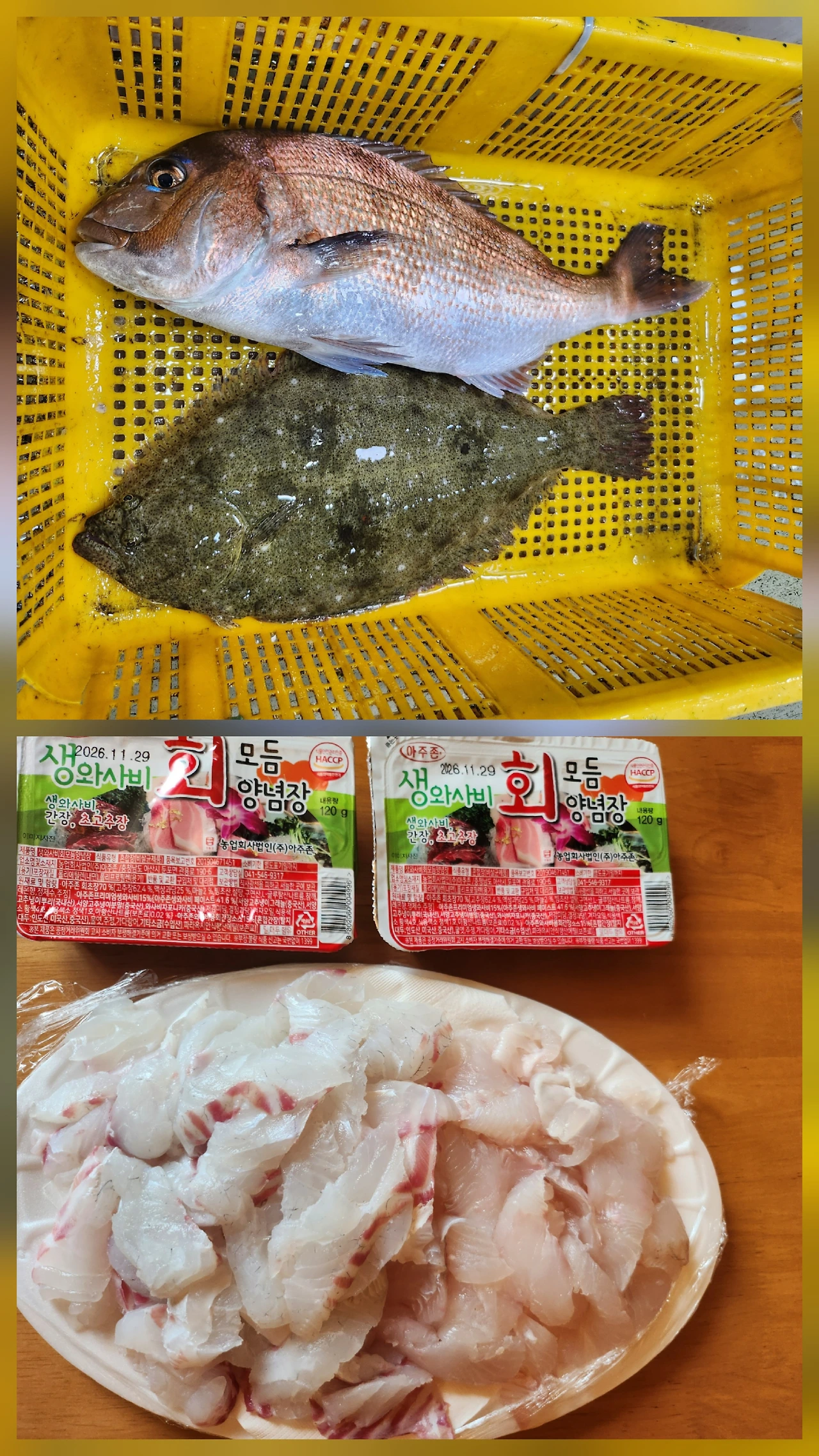 아버지께서 나가실 때마다 큰 물고기를 잡아오라고 외치던 둘째 아이의 성화에 못 이겨 결국 회를 사 먹었다. 결국 이렇게 회는 사서 먹게 될 것이라고는 모두가 예상하였지만 말이다. 횟집의 물고기는 역시 사이즈가 남달랐다. 우리가 잡은 고기는 회를 칠 때 살점 조금이라도 살리고자 천천히 조심히 회를 떴었다. 하지만 횟집 아저씨는 거침없이 생선의 많은 살을 숭덩숭덩 베어내셨고 남은 머리와 살점이 많이 붙은 뼈들은 모두 매운탕 거리가 되었다. 우리 아이 둘은 서로 경쟁을 하듯이 회를 씹지도 않고 삼키는 듯했다. 아이들이 회를 너무 잘 먹는 이런 모습들이 아버지의 낚시에 대한 의지를 불타오르게 하는 것을 아닐까 하는 생각이 들었다.