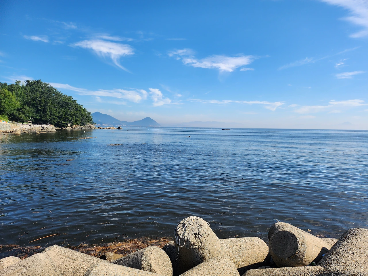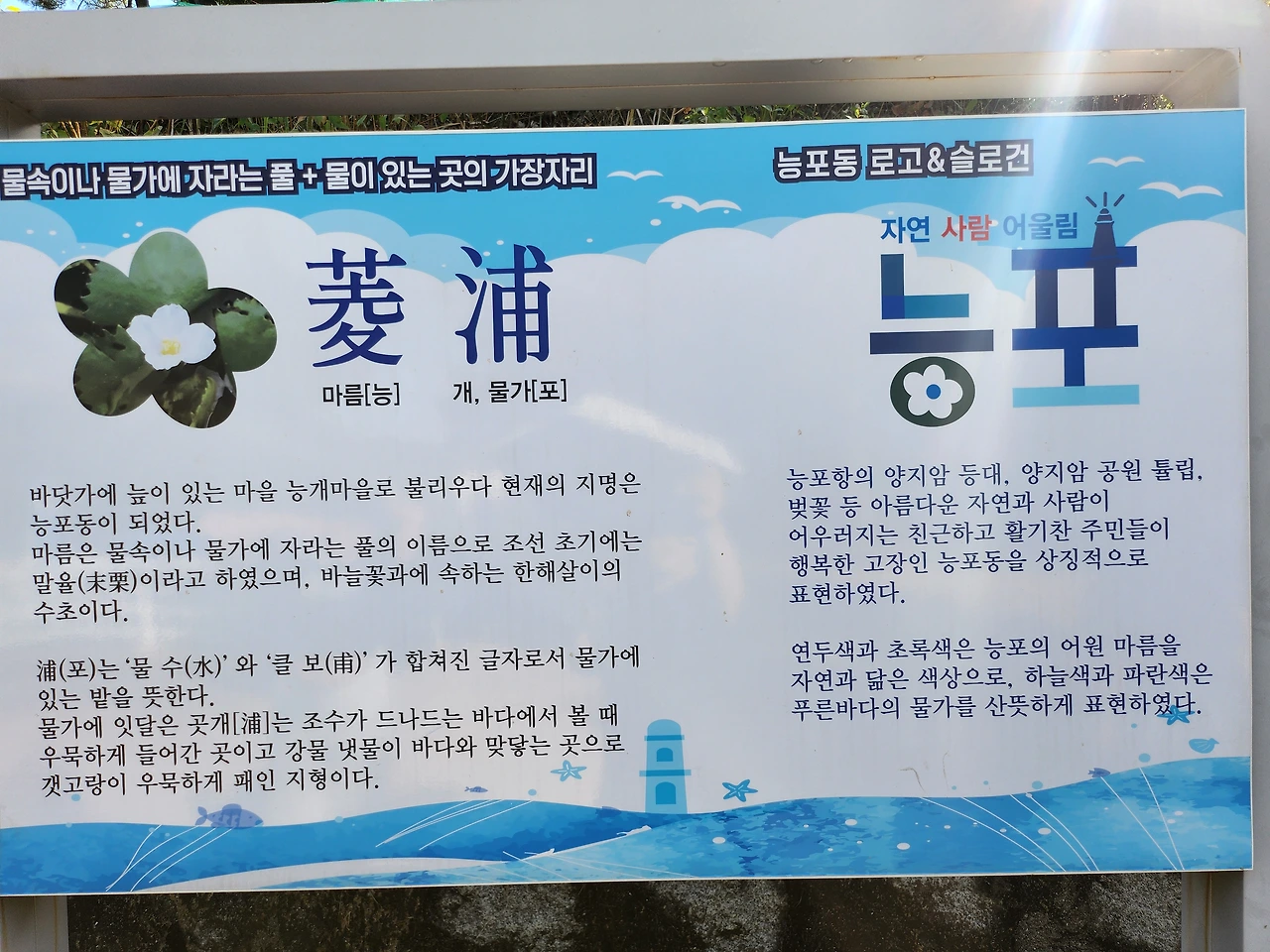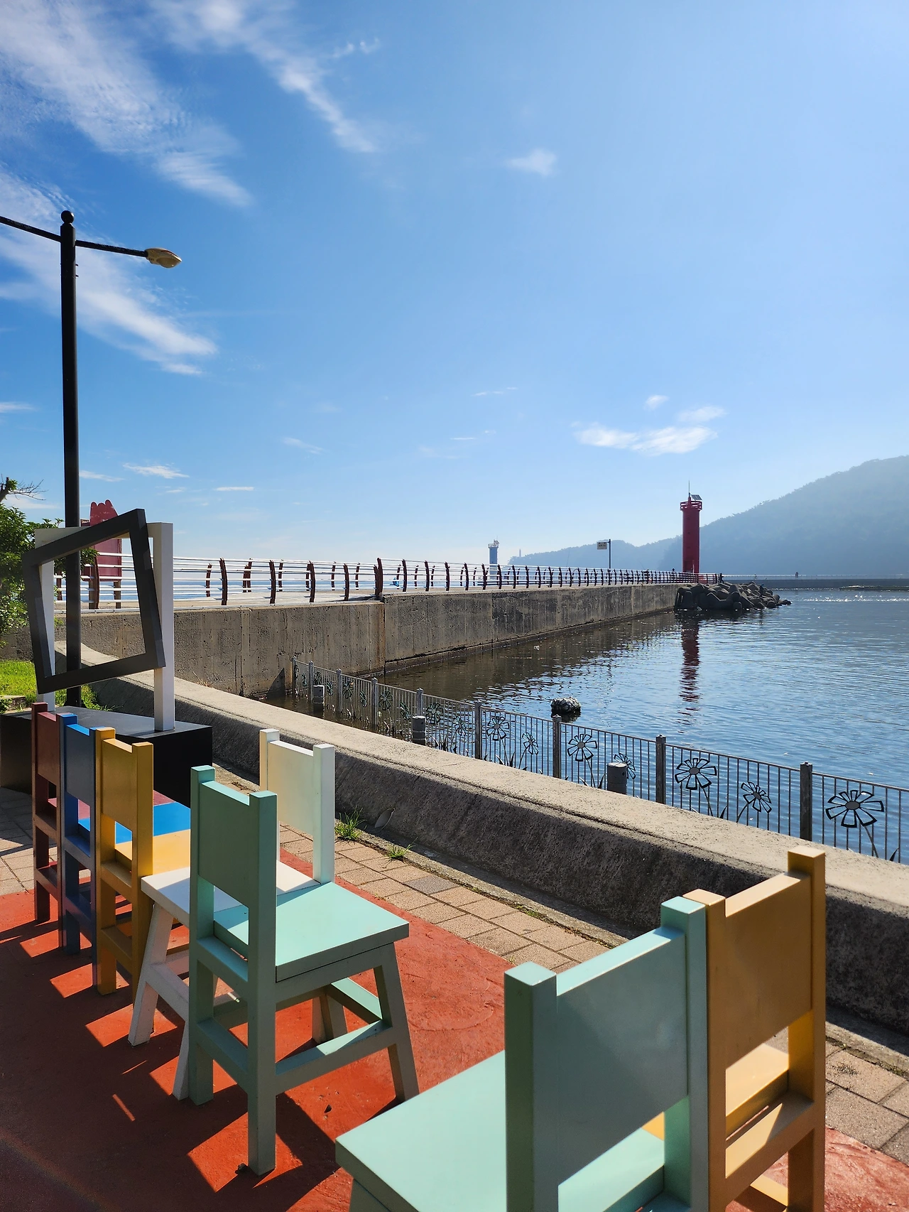 양지암 조각 공원에서 나오면서 아버지가 근처에서 낚시를 하고 계실까 싶어 능포수변 공원에 잠시 왔다. 동에 번쩍 서에 번쩍 하시던 아버지께서는 물고기를 따라 또 다른 곳으로 이동하셨는지 여기에는 계시지 않았다. 잠시 산책 겸 능포 수변 공원을 둘러보았다. 공원은 작지만 잘 꾸며져 있었고 산책로 공사도 계속 진행 중이었다. 바닷물이 만조인 시간이라 사람들이 걸어 다니는 곳까지 바닷물이 차있었다. 물이 깨끗한 때였다면 아이들이 놀기에 딱 좋았을 것 같다. 펜스도 쳐져있는 안전한 곳에 나지막이 물이 차있는 자연 수영장이었다.