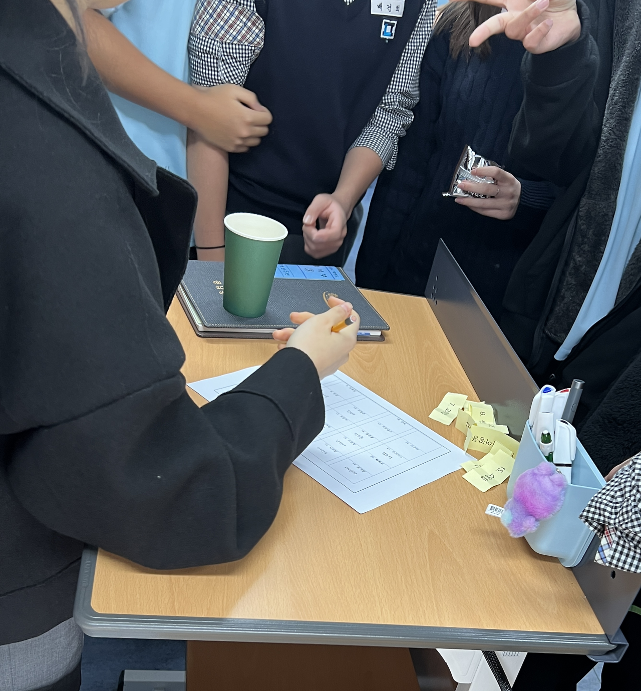 색지에 인쇄하고 가위로 오리고 손으로 접어 종이컵에 넣었다. 이 모든 건 조회 시작 30분 만에 이루어졌다.