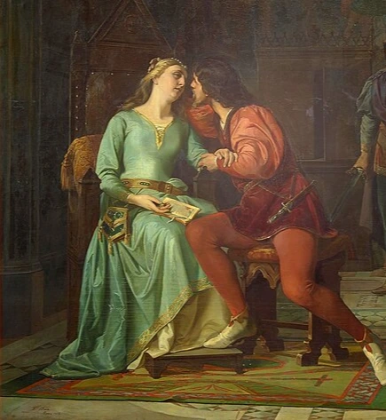 사기 결혼에 속아 흉측한 남편 지오반니와 살게 된 프란체스카. 그녀에게 유일한 낙은 잘생긴 시동생 파올로와 함께 문학을 논하는 것이었습니다. 어느 날 오후, 두 사람은 <랜슬롯과 기네비어>는 기사도 로맨스 소설을 같이 읽고 있었습니다. 이 책 내용이 뭐냐? 왕비와 기사의 불륜 이야기였답니다.