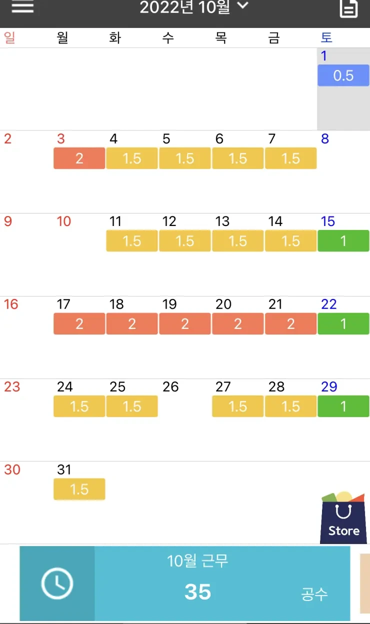 1.5공수 - 아침 7~저녁 7시(12시간)