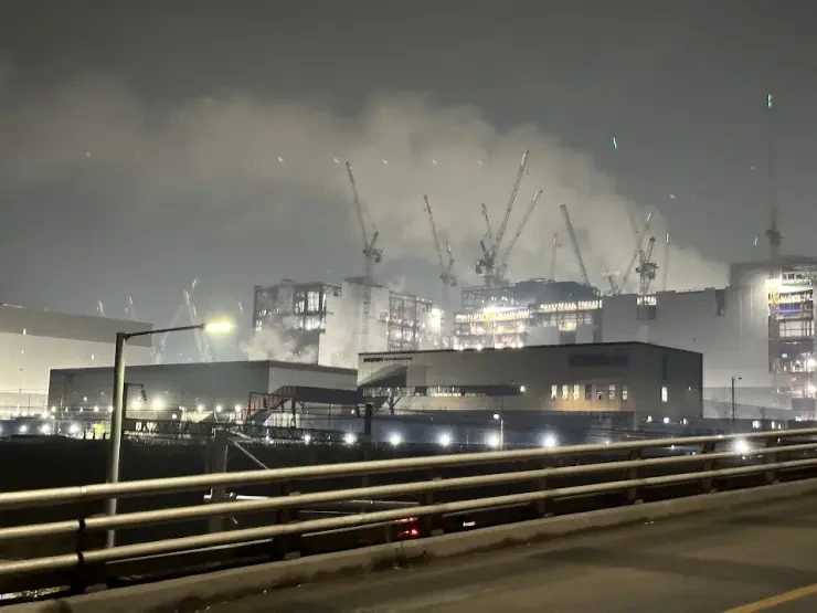 매우 조용합니다. 어느 때와 다름없이 수만 명의 사람들이 출퇴근하고 중장비들은 먼지를 거친 엔진음을 내며 바삐 돌아가고 있습니다. 무엇 하나도 사람의 손이 닿지 않는 것이 없습니다. 거대한 기계를 조종하는 것도 사람이고 전선 하나 연결하는 것도 단말인증을 받은 사람의 세세한 손길로 만들어집니다.