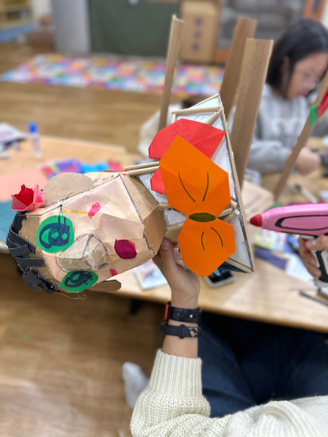 • 한 남자아이는 글쓰기를 안 좋아했지만, 글루건을 사용해 뭔가를 단단히 고정하고 만드는 일에 엄청 흥미를 보였어요. 이 친구에게 붙이는 작업을 맡기니, 마치 ‘전문 건축가’처럼 신나게 활약했습니다.