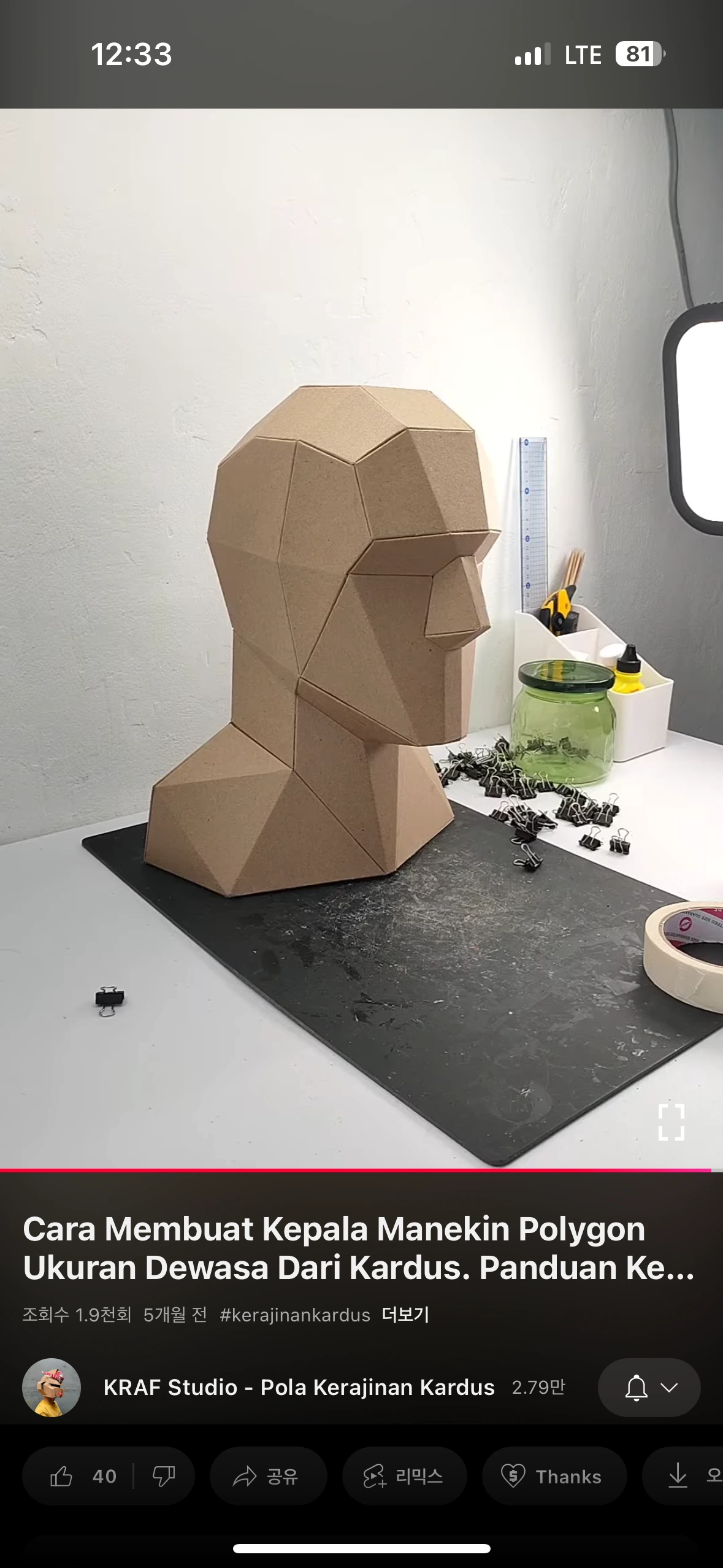 인터넷에서 남자 두상 도안을 하나 구입했습니다. 원래 계획은 이 도안을 두꺼운 종이(160g 이상)에 출력해 골판지에 붙인 뒤 오리고 접어 완성하는 것이었는데, 막상 해보니 생각보다 조각이 너무 많고, 공정도 까다롭더군요.