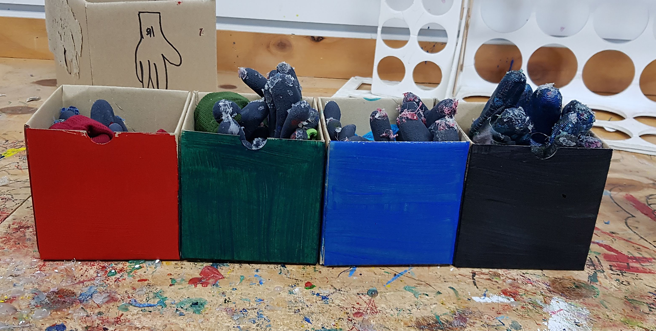 박스에 장갑을 크기별로 보관합니다. 빨간색이 제일 작고 파란색이 제일 큽니다. 박스에 소, 중, 대를 한문이나 한글로 쓴다면 아이들이 쉽게 정리할까요? 빨간색은 빨간색 박스에, 파란색 장갑은 파란 박스에. 이쪽이 훨씬 연관성이 높습니다. 아이들은 자연스럽게 같은 색 장갑, 박스와 연결해서 정리정돈을 할 수 있습니다.