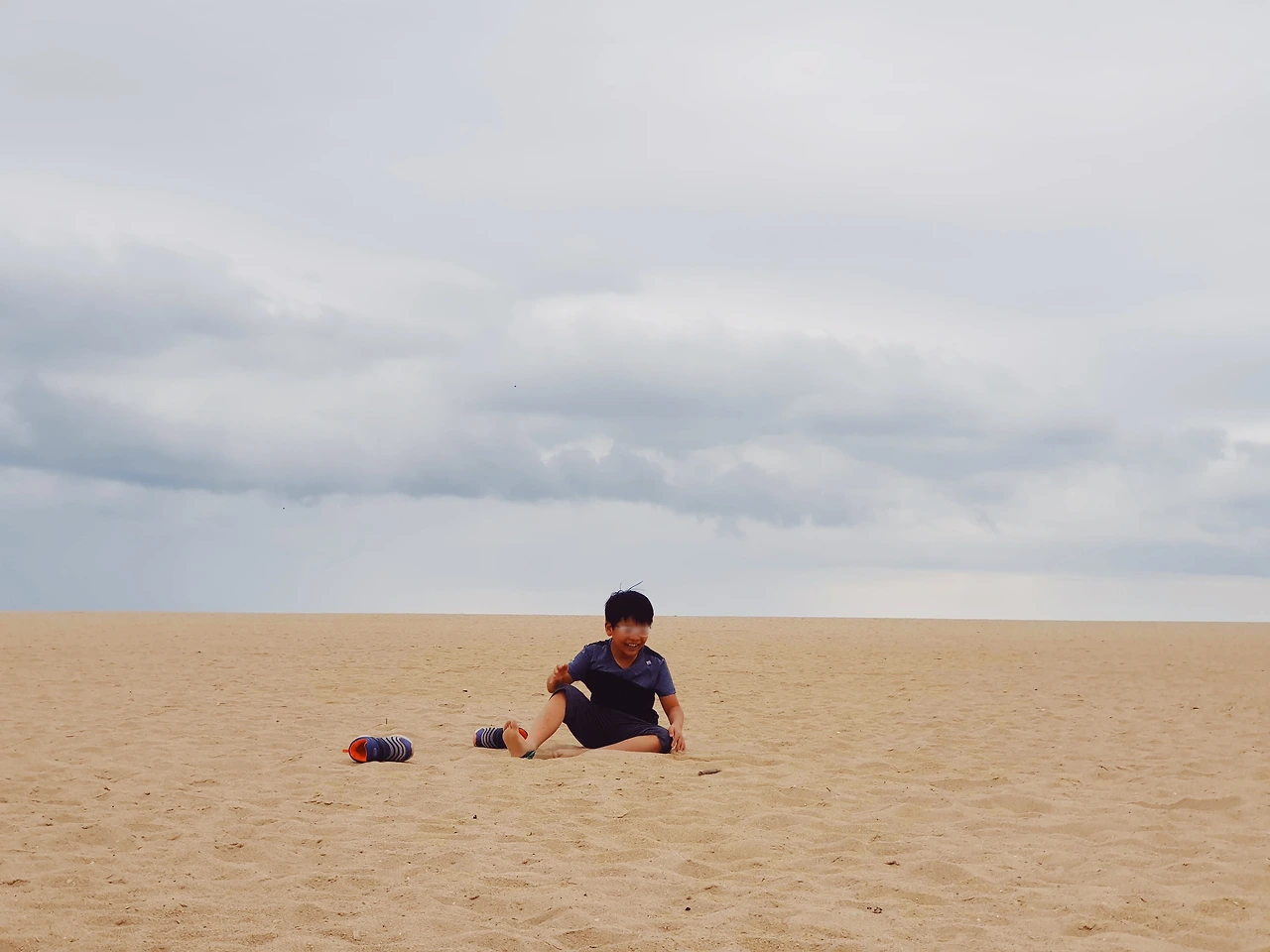 아이들은 마지막 시간까지 로프 피라미드에서, 풋살장에서 놀았습니다. 한 아이가 달리다가 넘어졌습니다. 모래사장이라 아프지 않았나 봅니다. 일어서는 대신 그냥 자리에서 주저앉았습니다. 그리고 한참 동안이나 모래를 가지고 던지기도 하고 자기 손에 덮기도 합니다. 초등학교 고학년임에도 유치원 아이보다도 신나게 모래 놀이를 합니다. 그리곤 지쳤는지 그대로 드러눕습니다. 선생님은 이 광경을 바라봅니다. 멀리 펼쳐진 해변과 흐린 하늘, 놀다 지쳐 누워버린 아이, 멀리서 들리는 아이들 소리...