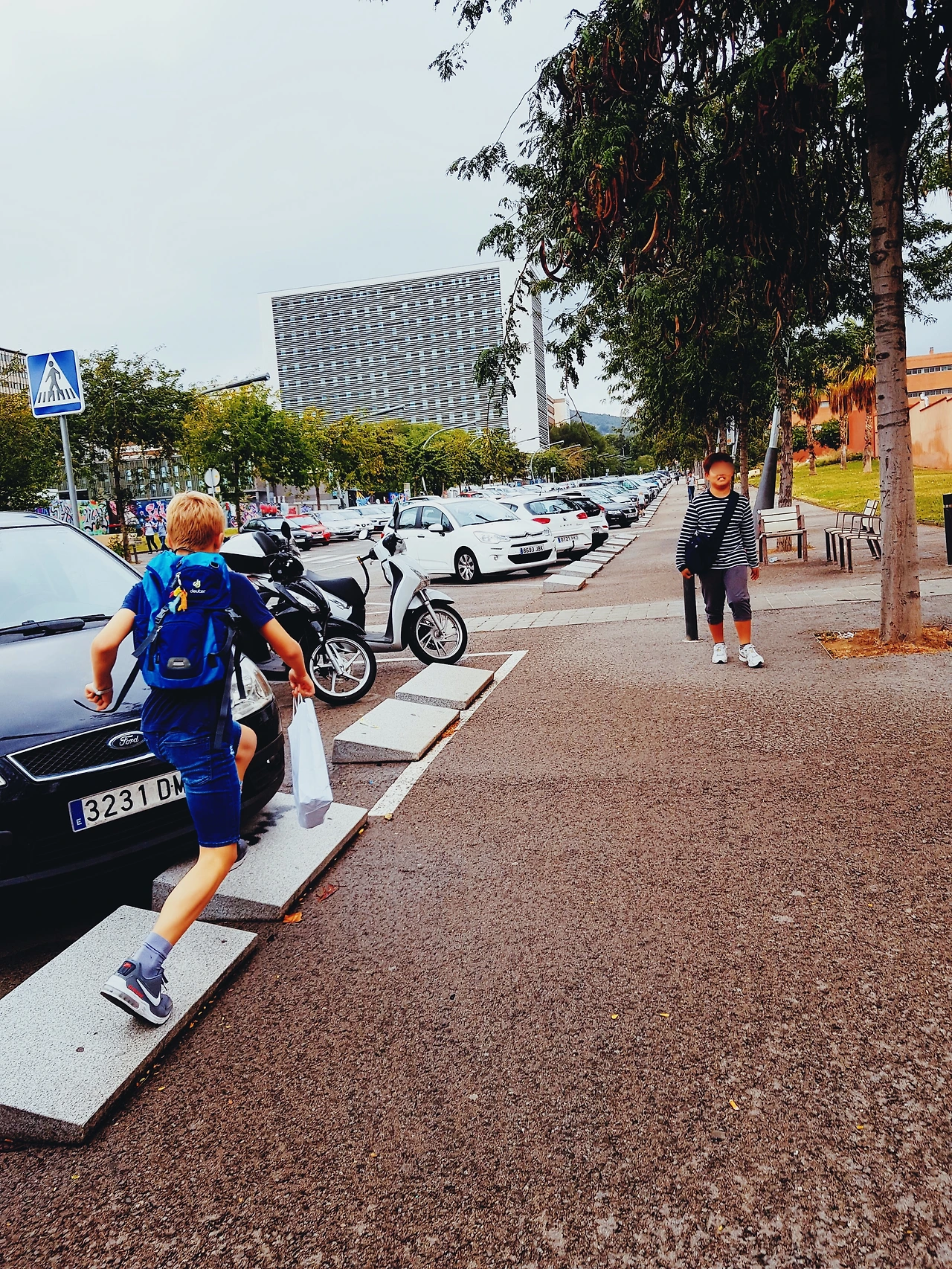 보도블록으로 걷지 않고 도로와 맞닿아 있는 연석 위로만 다니는 아이,