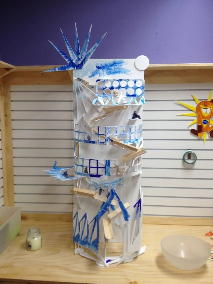 사진 설명 : 6년 전 처음 아이들에게 보여주기 위해 만든 엘사의 얼음궁전 구슬 트랙. 지금도 현역으로 활동하며 아이들이 굉장히 좋아한다. 다만 세월의 흐름에 견디기 위해 거듭된 업데이트(?)로 인해 엘사 궁전의 모습은 거의 남아있지 않다. 남자아이들의 거친 손길을 견디기 위해서는 모든 곳을 튼튼한 나무로 만들어야 한다는 교훈을 주었다.
