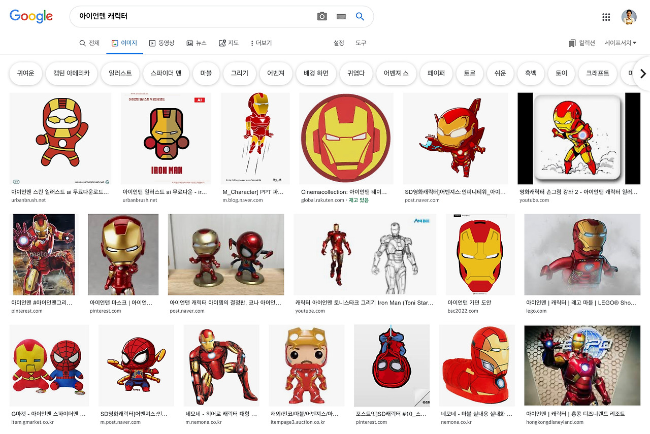 보통 이미지 검색은 구글로 검색할 것이다. 이때 검색어에 (캐릭터 이름) + 캐릭터라고 검색해 보자.
