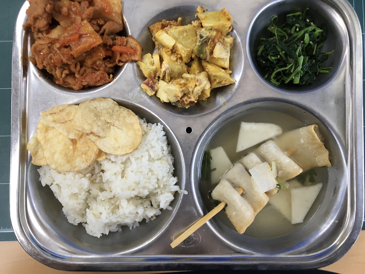 올해는 영양사님이 바뀌셨지만 양 문제를 해결할 순 없었다. 작은 학교는 급식 예산도 그만큼 적어 양이 부족할 수밖에 없는 건가 보다 하고 넘기기로 했다. 그래도 겹치는 메뉴가 거의 없었다는 점에서 영양사님이 존경스러웠다. 학교는 급식을 실시하는 곳이라 영양사님에 대한 소문이 안 날 수가 없는데 전입하시기 전부터 맛있게 하시는 분이라고 소문이 나있었다. 과연 그 소문대로 솜씨도 좋으시고 메뉴도 잘 짜셨다. 일례로 같은 과일 샐러드라고 적혀있지만 한 날은 열대과일을 주로 넣으셨다면 다른 날은 흔히 맛볼 수 있는 과일들을 넣으셨다. (구) 취사병 입장에서 그게 피땀 흘리는 노력이라는 걸 안다.