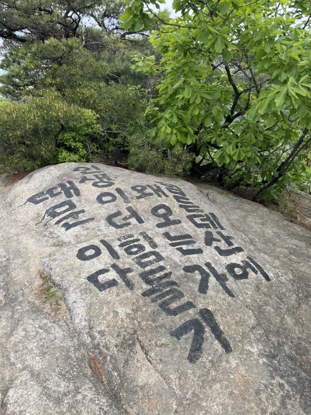 산을 오르는데 갑자기 몸의 무게가 묵직하게 느껴진다. 그것이 삶의 무게 같아 갑자기 서러워 암릉을 오르다 깊게 참던 눈물이 엉엉 맺힌다. 평지에서 숨겨지기 급하던 감정이 한없이 적나라하게 드러나버린 것이다. 이곳은 바로 아무도 모르게 울 수 있는 가장 좋은 공간이다. 한참을 시원하게 울다 보니 부드러운 바람, 순수한 새소리가 나를 달래주는 것만 같다. 마음을 추슬러본다. 다시 묵묵히 가보자, 어차피 되돌아갈 길은 없으니까. 흘러가는 구름을 보고 구름같이 살고 싶은데 그게 참 쉽지 않다며 입에서 작은 구름을 뱉어낸다.