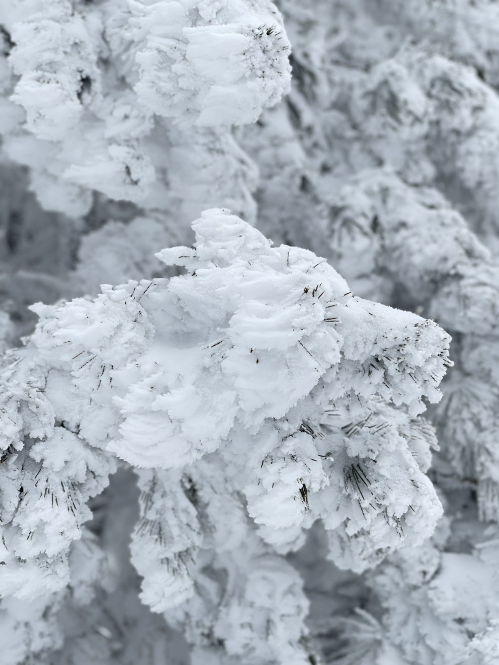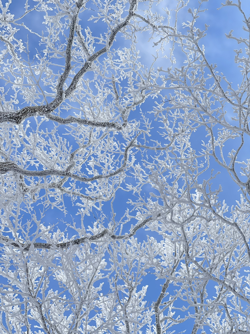 수많은 잎과 살아가던 가지들은 이제는 그것들을 잃고 그만큼의 눈을 머금었다. 상고대. 무빙이라 부른다. 하얀 솜옷을 입은 것 같기도 하다. 잎을 잃은 공허함 때문인지 본래 제 잎보다 많은 눈을 머금고 있다. 버거워보이는 그 가지를 더 가깝게 보기 위해 얼굴을 가깝게 하니 총총한 꽃눈이 박혀있다.