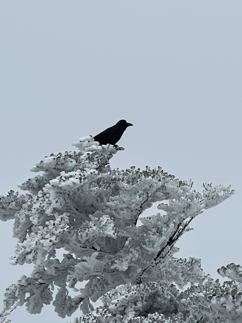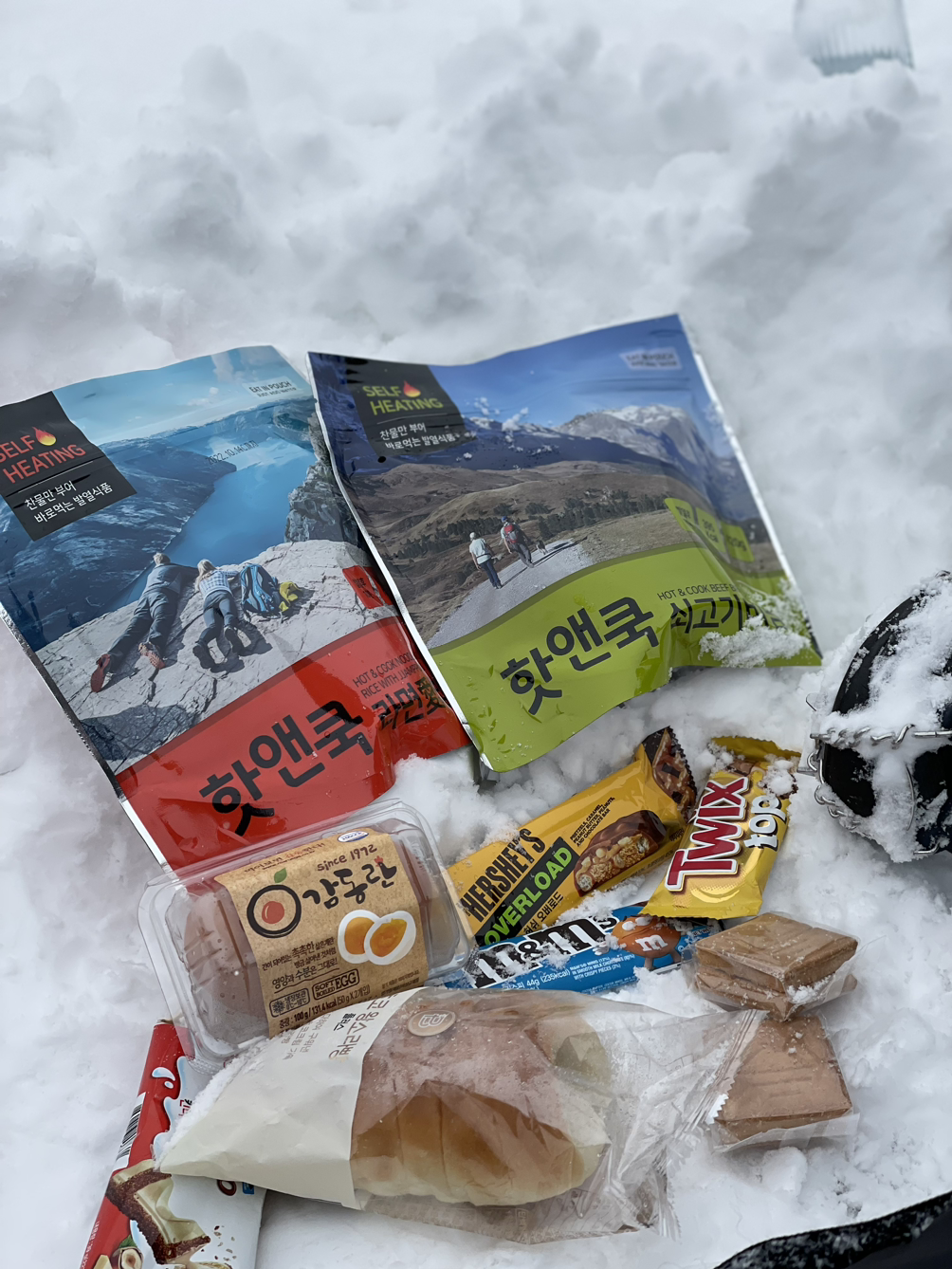정상이 보인다. 정상에는 벌써 각자의 눈구덩이를 파서 그 안에서 따스한 한 끼를 나누는 이들이 보인다. 강아지가 구덩이를 파듯 눈을 열심히 파서 그 안으로 쏙 들어간다. 몸을 데우기 위한 식사를 꺼낸다. 발열 도시락에 끓이는 전투식량. 라면을 좋아하지 않지만 오늘은 논외다. 코를 박고 오물거리는 소리 외에 아무 소음이 나지 않는다. 콧물이 나는지 마는지는 중요하지 않다. 짠걸 먹었으니 단걸 먹어야지. 눈에 잘 넣어뒀던 꽁꽁 얼은 초코 소라빵을 후식으로 먹는다. 배가 부르니 주위를 떠도는 큰 부리 까마귀가 보인다. 지난여름에 본 그 까마귀와도 같아 그동안 잘 지냈는지 의미 없는 안부를 묻는다.