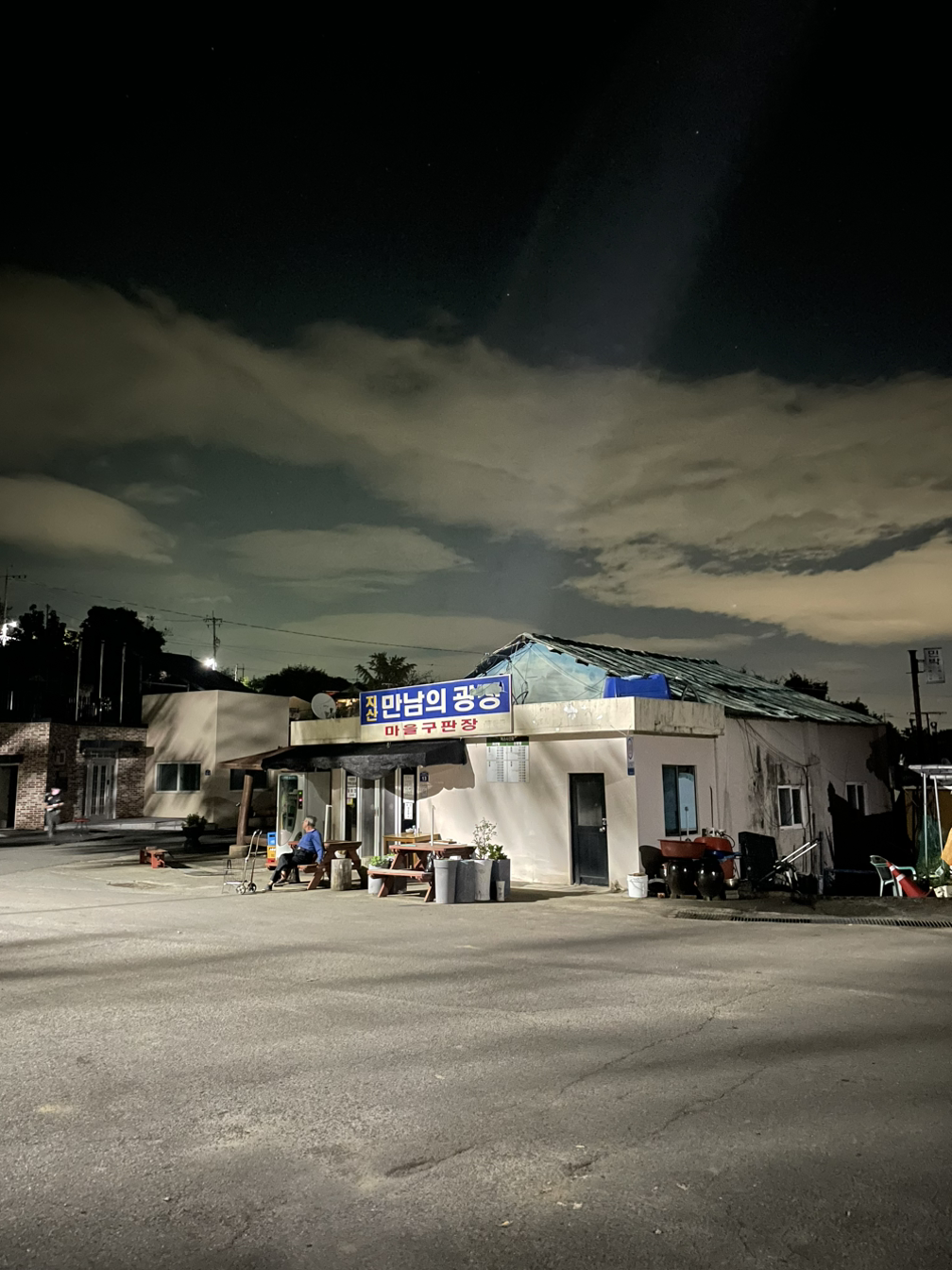 이전의 목가적인 분위기와 감미로운 분위기는 떨어진 해를 기점으로 일순간에 사라진다. 둘이 손을 꼭 잡고 걸어보지만 그래도 아무것도 보이지 않는 산길은 처참하고 무섭다. 이미 '안전 산행'하라는 대장님과의 약속은 허물어졌고, 나의 안내 버스는 떠난 지 오래이다. 발걸음을 재촉해 보이지만 기이한 산길은 걸으면 걸을수록 더욱 길어진 느낌이다. 적막만 감돌던 산길. 둘이 손 꼭 붙잡고 간절한 마음으로 걸음만 집중하던 가을밤. 끝나지 않을 것 같던 적막 속에서 문명의 소음이 찾아온다. 와, 도착이다. 안도감에 막힌 숨이 터지니 드디어 후련하다. 지산 만남의 광장. 마을 구판장에서 올지 모를 택시를 기약 없이 기다리는데, 밤하늘 별은 내 마음을 전혀 모르고 청초롬히 빛이 난다. 내가 지나온 가을 산은 이제는 검어지고, 그 산이 둘러싼 오래된 마을 건물들은 기이하게 느껴지는데 이 공간이 비현실적이어서 여기가 정말 현실이 맞는지, 나 살아서 돌아온 것 맞는지, 내가 잠시 어디에 홀렸던 것은 아닌지 의문이다. 여름은 한참전에 지나갔는데 때 늦은 공포영화에 소름이 오도도 돋는다.
