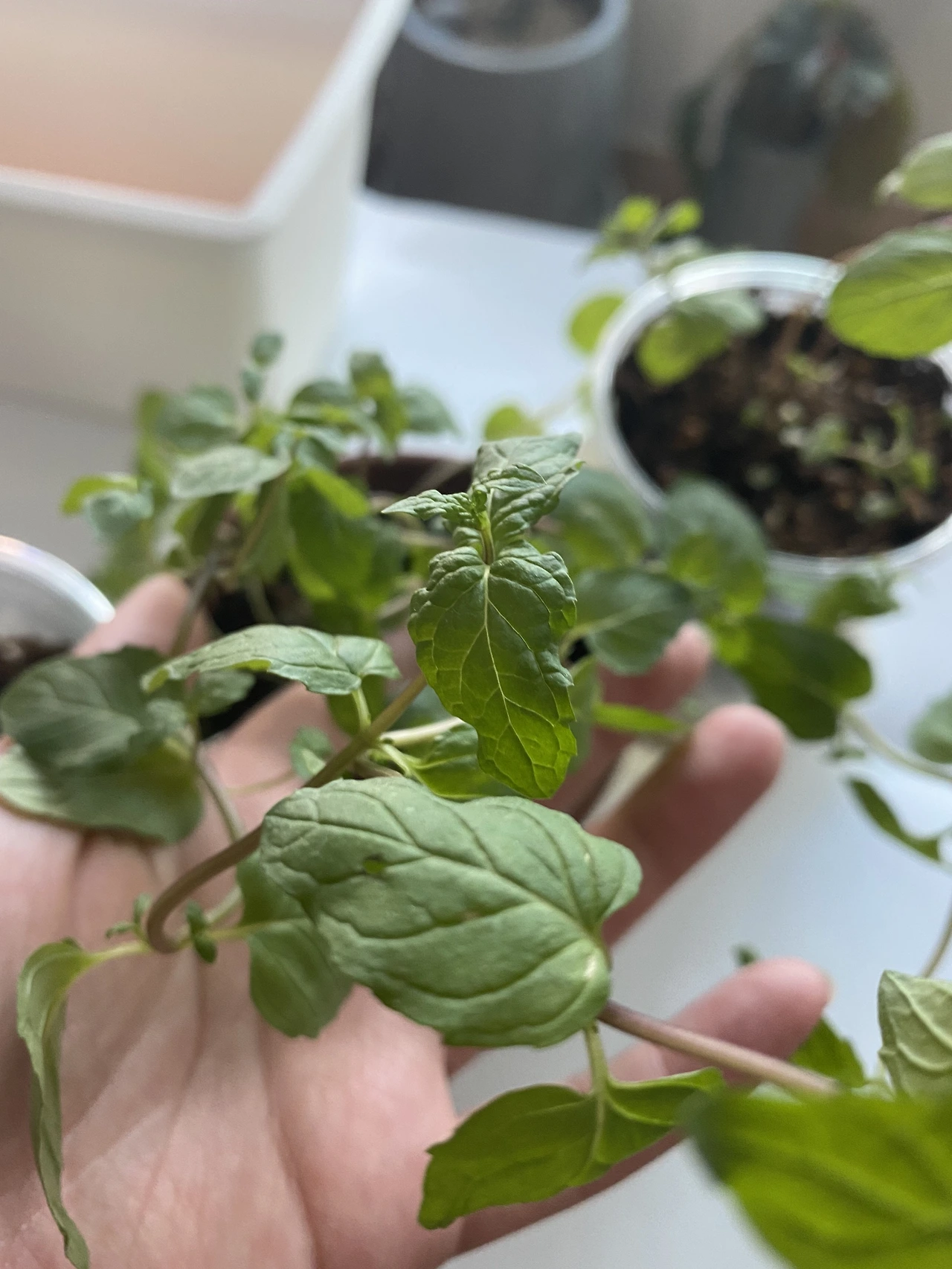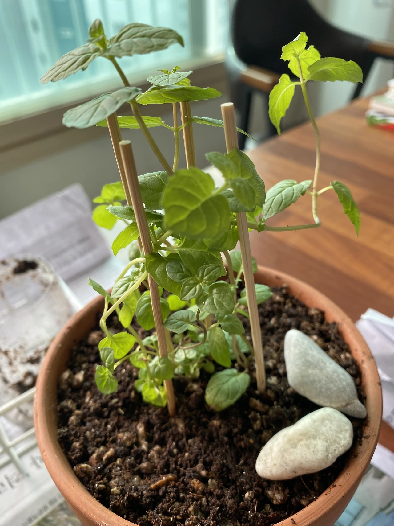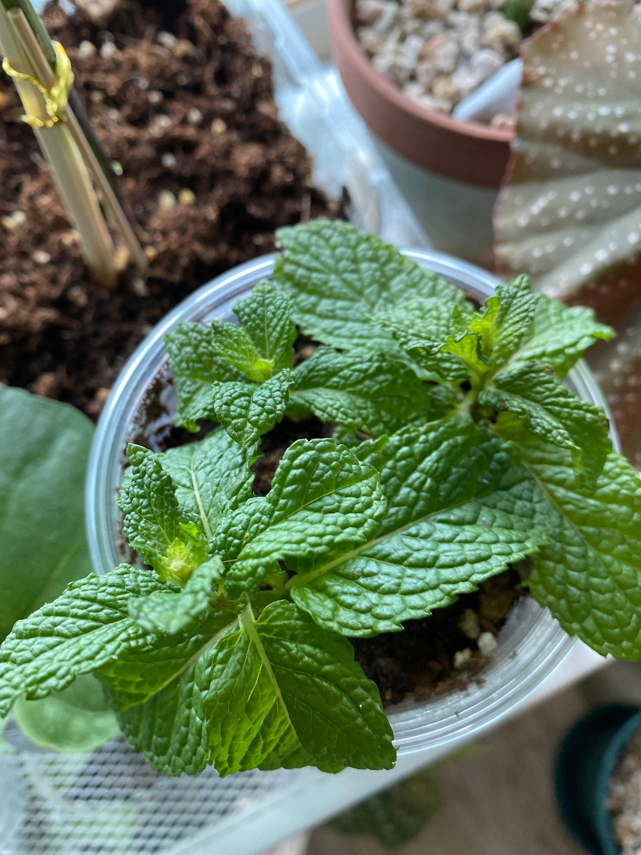 작은 페퍼민트들은 다행히 점점 더 튼튼하게 자라났다. 햇볕이 좋은 곳에 잘 놔둔 덕도 있지만 화분의 크기가 작아서 배수나 통기가 원활한 덕도 있었다. 굉장히 중요한 발견 중 하나였다. 식물 집사 초기에는 분갈이병(?)이 있었다. 혹시나 식물 크기에 비해 화분이 작아 잘 자라지 못하게 되면 안 된다는 생각에 뿌리가 가득 차지 않아도 눈에 보기에 식물이 크면 부지런히 분갈이를 해댔다. 그러나 이따금씩 그게 독이 되어 식물을 초록별로 보내는 경우도 있었다. 분갈이 과정에서 식물이 몸살을 앓기도 하고 너무 큰 화분에 식재하면 배수와 통기가 어려워 과습으로 보내기도 했다. 사람도 잦은 이사는 힘이 들듯이 식물도 초반부터 좋은 환경에서 키워줘야 한다는 깨달음을 얻었다.