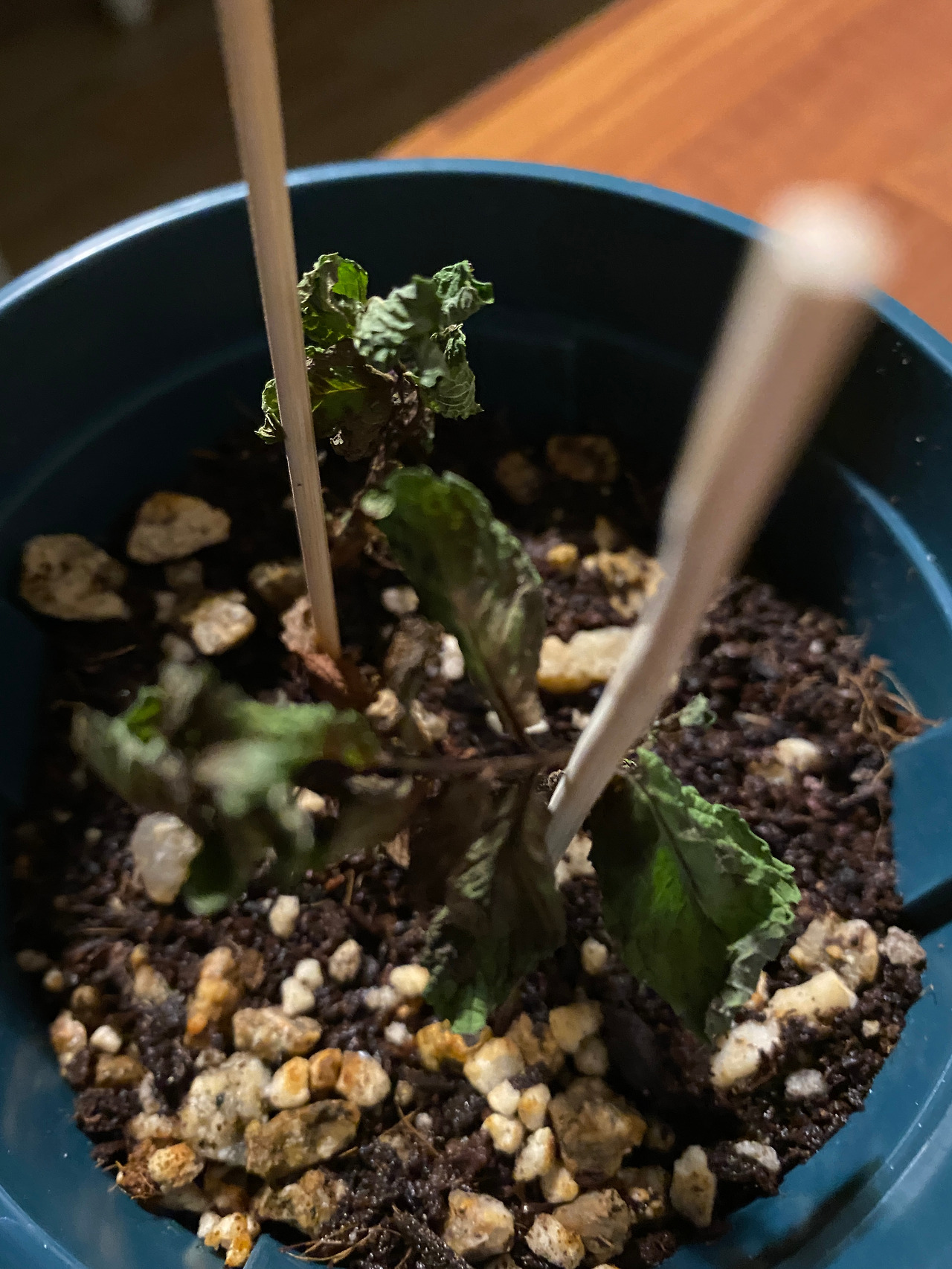 그러다 페퍼민트는 겨울로 접어들면서 인생 3회 차를 맞게 되었다. 동향인 우리 집 특성상 겨울이 되니 햇볕은 부족하고 깊은 화분 때문에 통풍이 잘 되지 않아 진딧물이 한가득 생긴 것이다. 시중에 판매하는 해충약을 뿌릴 수도 있었지만 나름 식용으로 기르는.. 아이였기에 최대한 양보해서 과산화수소 희석수로 소독을 진행했다. 그럼에도 심하게 진행된 경우가 많아 2022년 봄까지 가지치기와 희석수 분사를 꾸준히 병행했다. 흙 위에 줄기를 남기지 않아도 흙 밑에 건강한 뿌리만 남아있다면 싹을 틔워낼 수 있기 때문에 갈아엎지 않고 계속 기다리고 있었는데, 아- 결국 모두 죽었다.