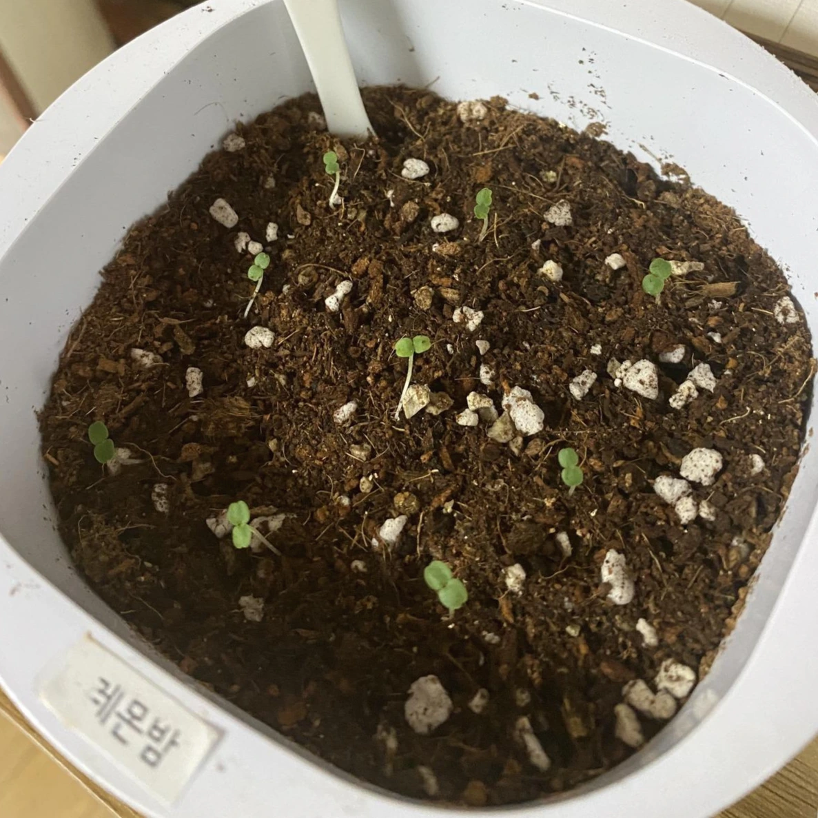 레몬밤을 화분에 심은 지 3일 정도 지났다.