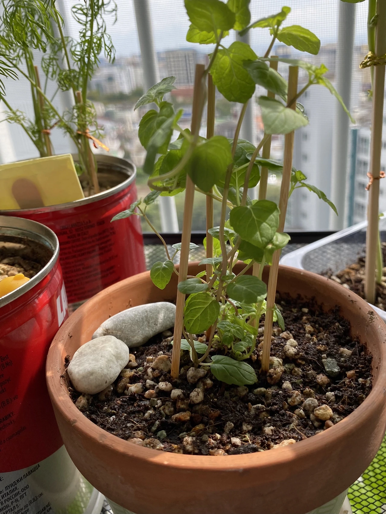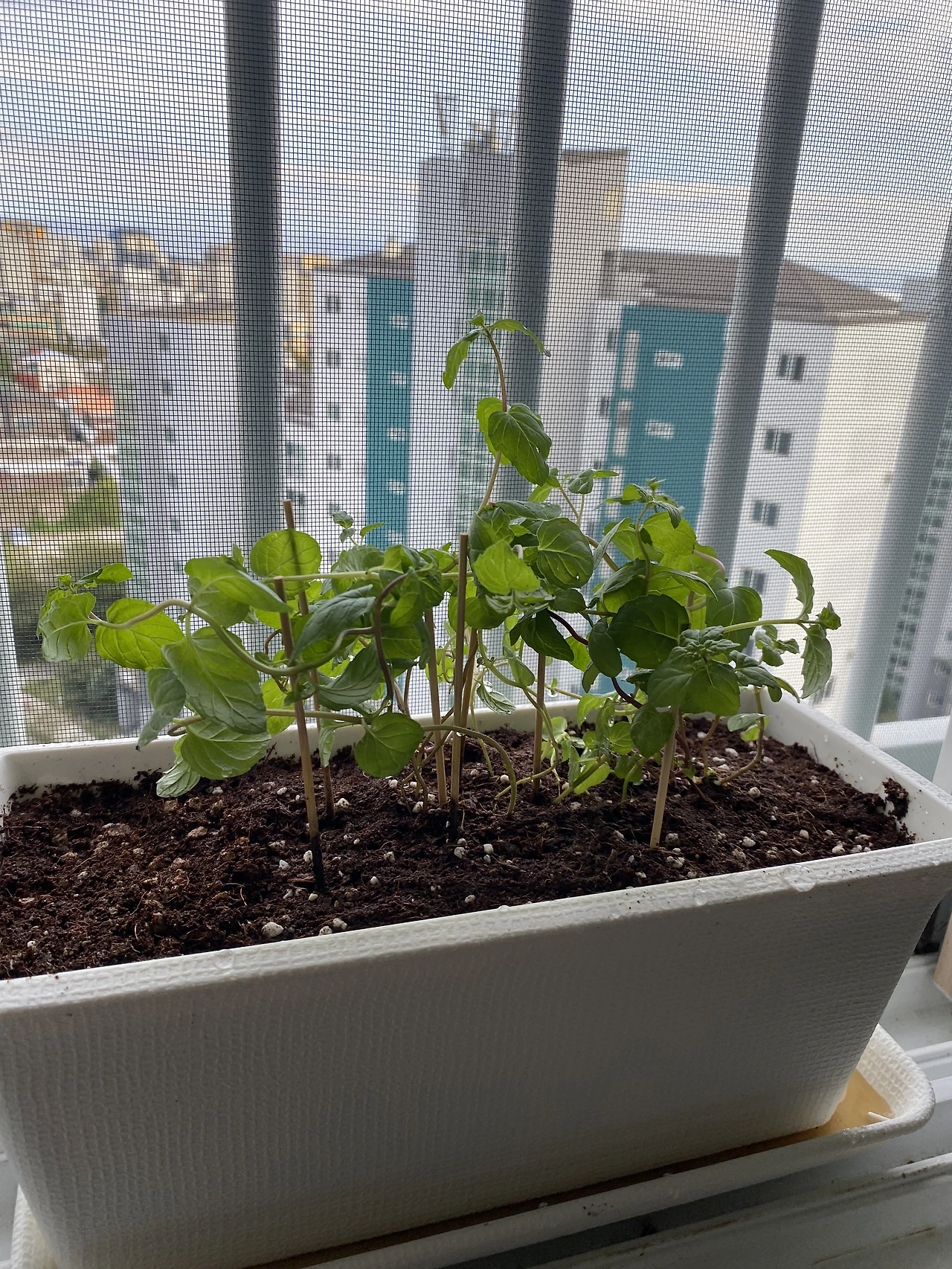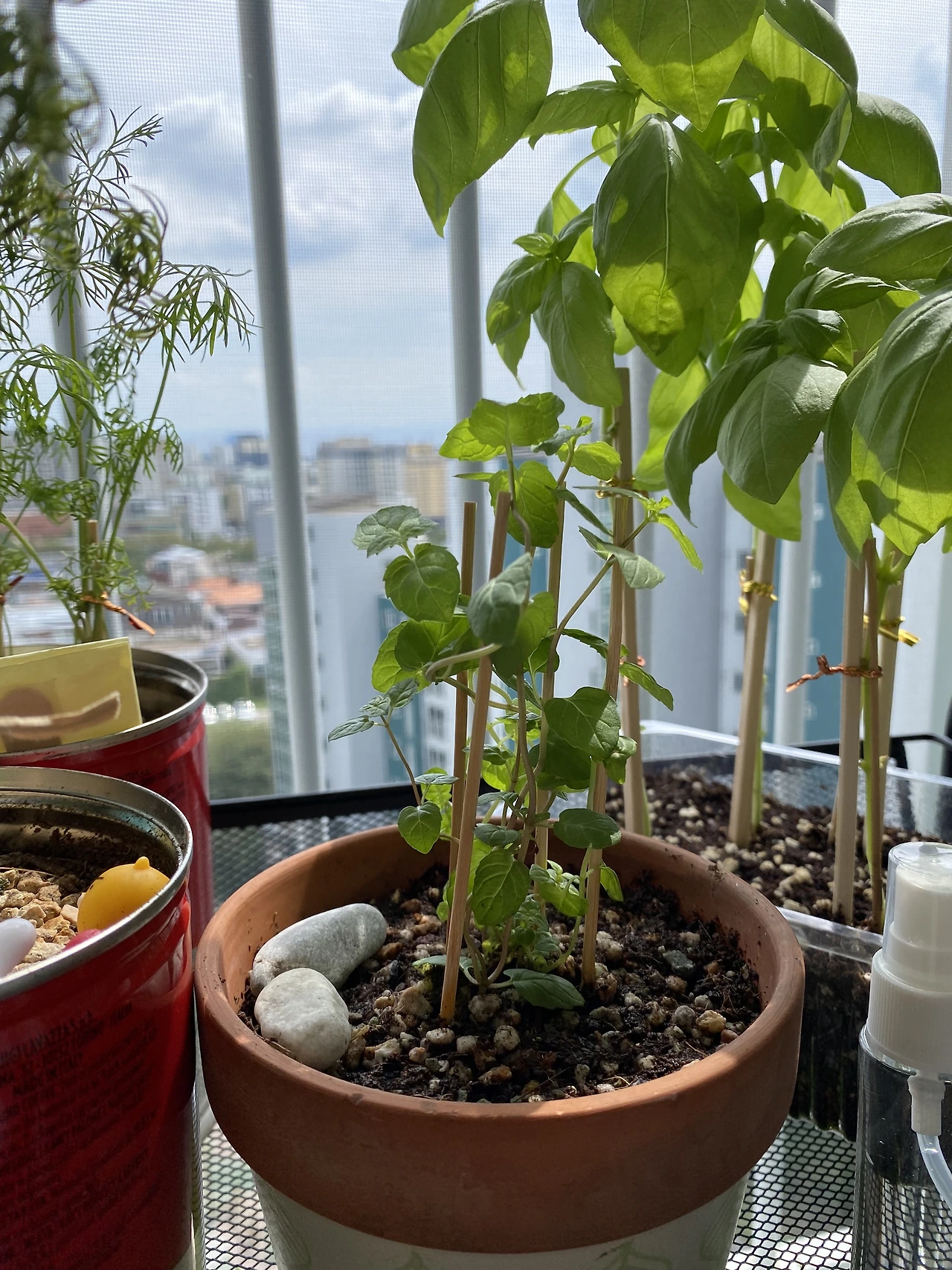 한 달이 지났다. 여름철 식물은 워낙 빨리 자라기 때문에 그 과정을 잘 찍어줬어야 했는데, 다른 친구들보다 기록에 큰 열정을 들이지 못했다. 그동안 레몬밤의 성장 환경에는 변화가 찾아왔다. 레몬밤은 그간 채광이 약한 발코니에서 키웠는데, 내가 여름에 이사를 하게 되면서 채광은 물론, 풍경까지 개선되었다. 여름을 지나며 레몬밤은 본잎을 틔워냈다. 흡사 깻잎 같은 모습에 잡초처럼 느껴지기도 했지만 나름 어엿한 허브다. 레몬밤 물 공급 주기는.. 음. 솔직히 말하면 잊을만할 때쯤 주며 키웠다. 다행히 내 기대보다 더 잘 자라고 있다.