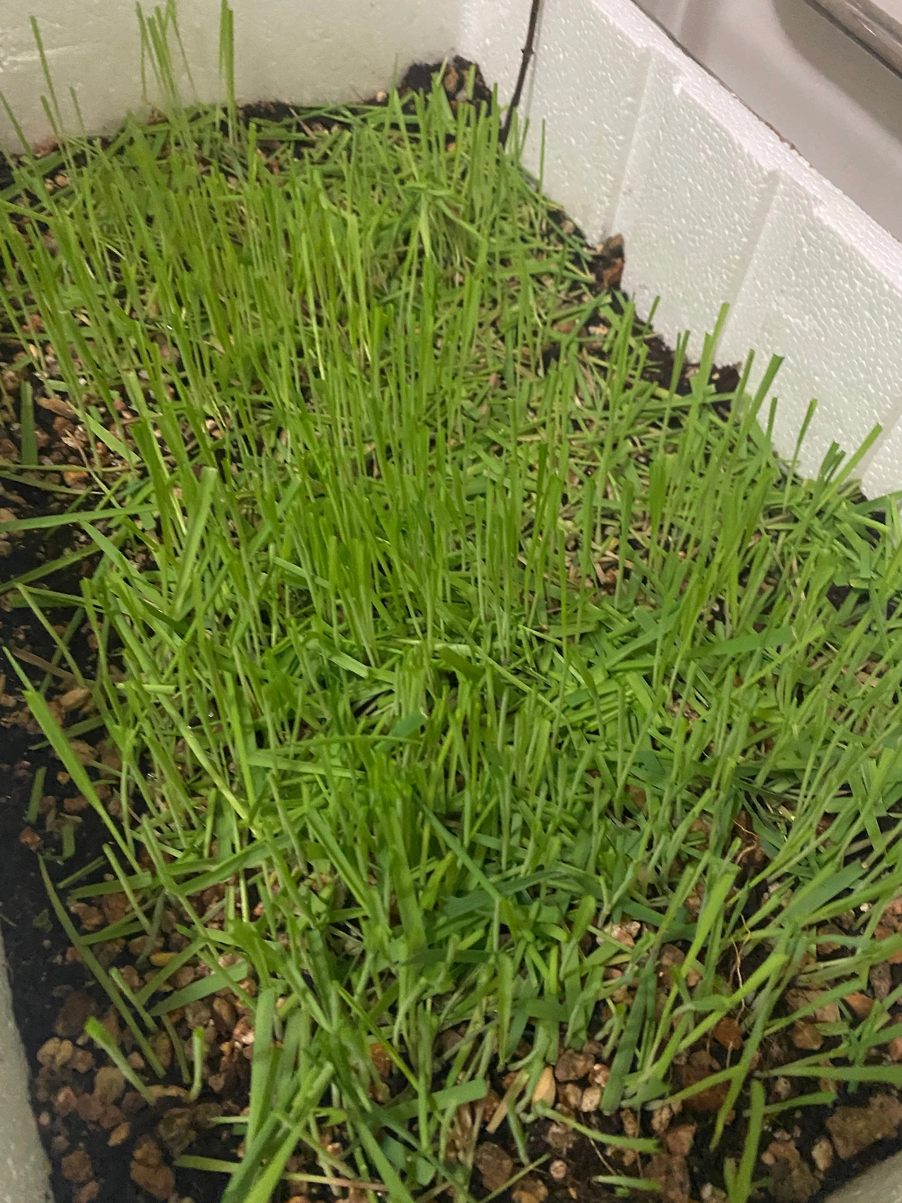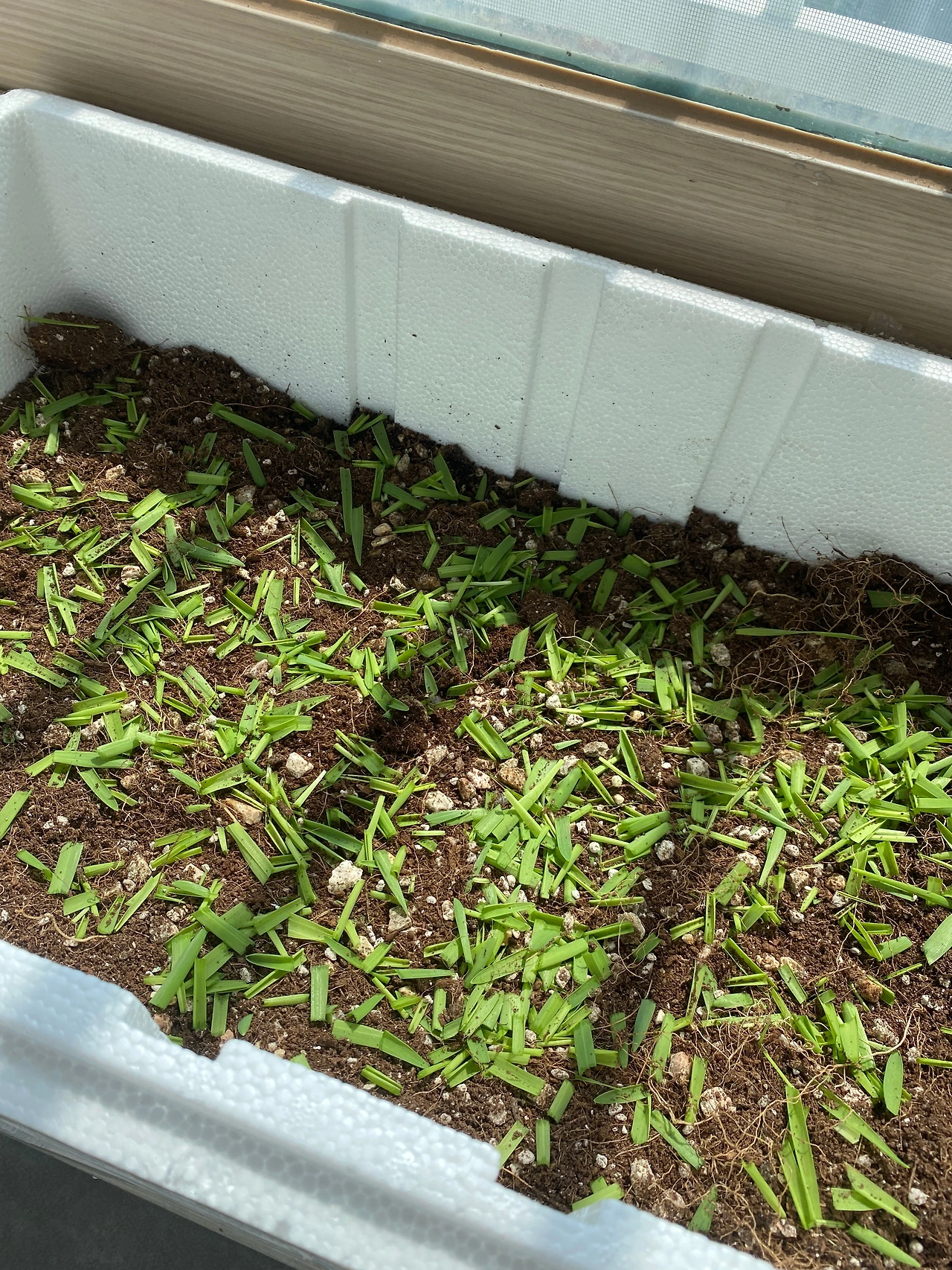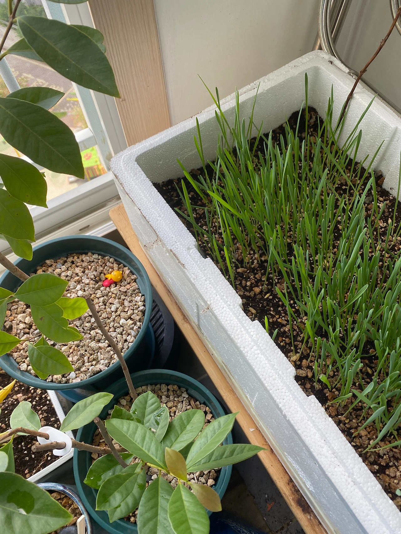 작은 화분에서 새싹보리 재배 실험이 성공적으로 마무리되어, 우리 집에서 한 번 사용하고 남은 흙을 스티로폼박스에 다 모아서 새싹보리 씨앗을 뿌려주었다. 역시나 엄청나게 잘 자라주었고, 자라난 새싹은 잘게 잘라서 그 흙의 비료로 뿌려주었다. 그리고 그 흙을 지금까지도 잘 사용하고 있다.