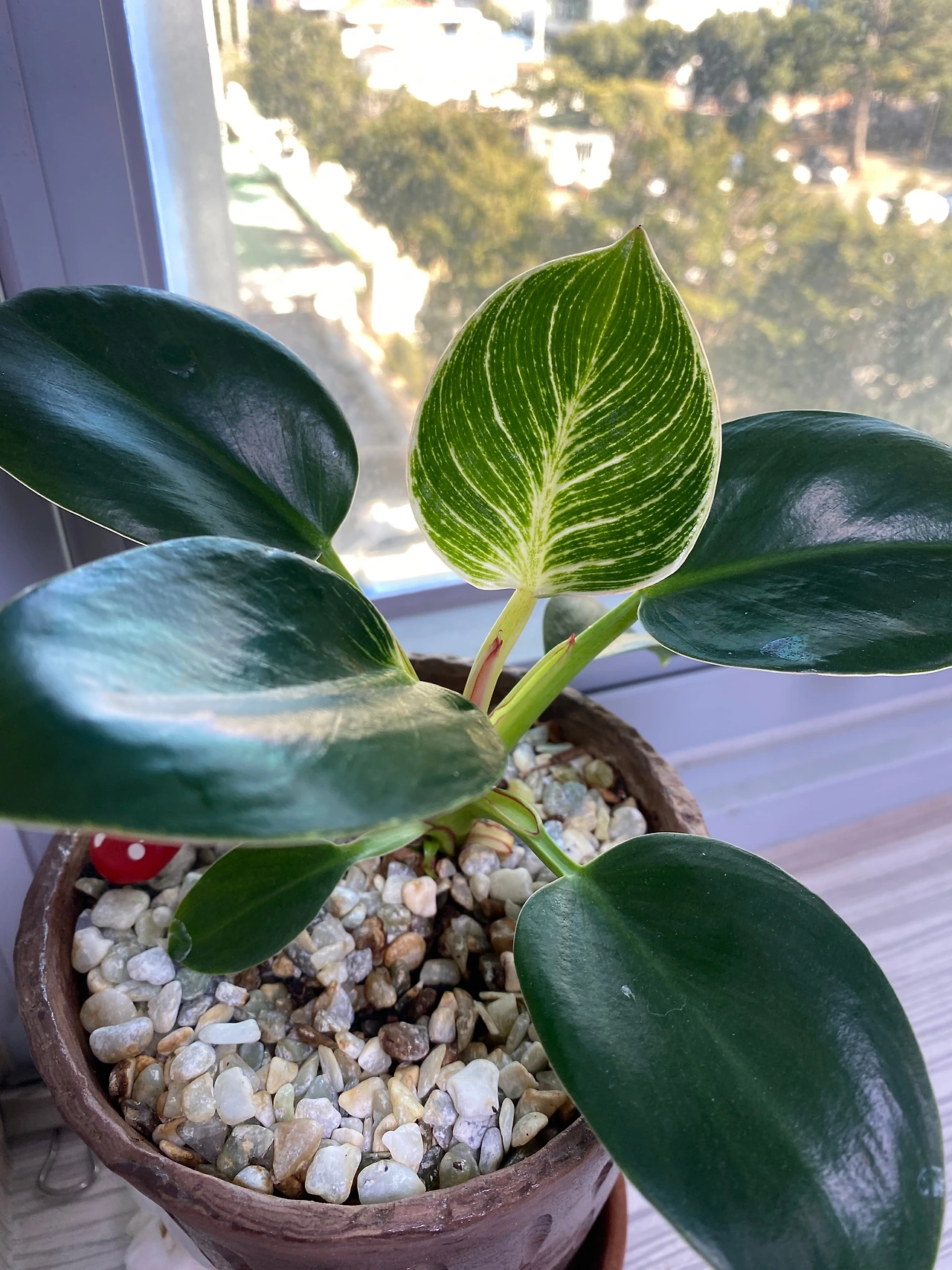 햇볕이 부족한 동향의 식물의무실이지만, 버킨이 드디어 하얀 잎무늬를 보여주었다. 완벽해.