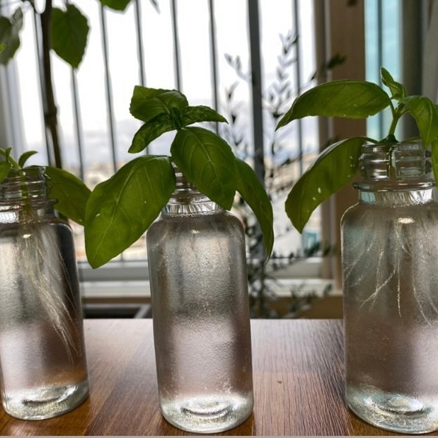 쑥쑥 자라는 바질만큼 점점 자신감이 자라난 나는 주변에 기특한 바질을 전파하고 싶은 나머지 번식법을 알아보게 되었고, 겁도 없이 '물꽂이'의 세계에 발을 들이게 된다.