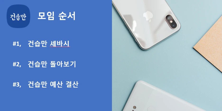 어제는 2023년 건습만의 두 번째 정기모임이었다. 정기모임의 구성은 다음과 같았다.