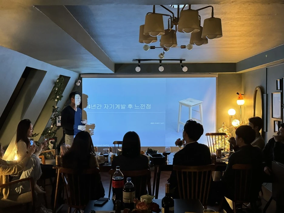 서로에 대한 간단한 소개 이후 '건습만 세바시'가 시작되었다. 건습만 세바시는 자유 주제로 이루어진다. 본인의 이야기를 할 수 있는 연사를 모임 참석자 중에서 섭외하고, 발표 주제에 대해선 철저히 자유이다. 본업과 관련된 정보성 강연 또는, 본인의 생활과 자기 계발로 동기부여 강연을 해도 된다. 한 가지 감사한 것은 모인 분들이 다들 대단한 분들이라 발표자로 부탁을 드렸을 때 기꺼이 준비해 주신다. 그리고 발표 퀄리티 또한 상당하다.