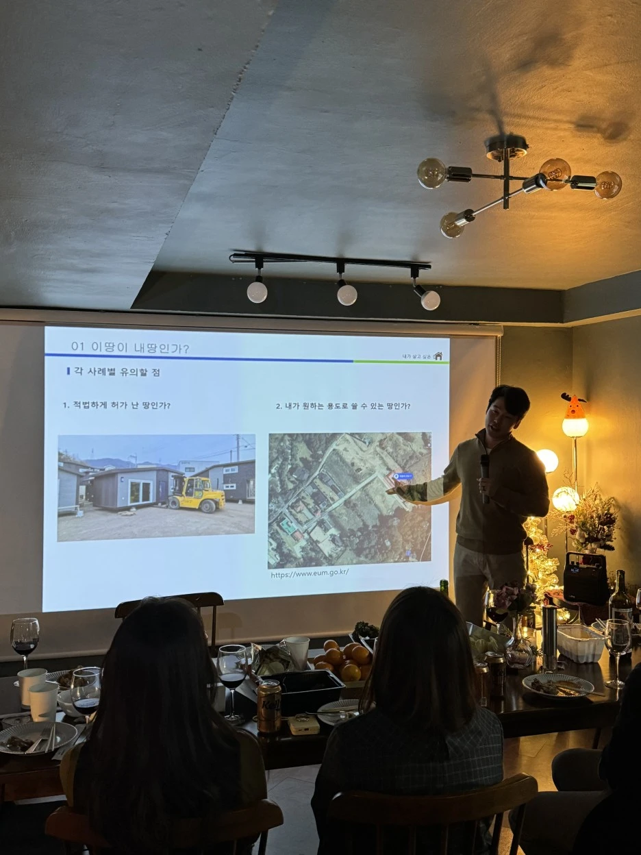 첫 번째 발표를 맡아준 건축가 친구이다. 건축은 어떤 과정으로 이루어지는지, 주택을 짓는데 보통 얼마 정도의 건축 자재가 필요한지. 인접도로와 현황도로의 차이점 등. 이전까지 한 번도 들어보지 못한 정보를 얻었다. 단순히 땅만 사고 집을 짓는 것이 아니었다. 그 이면에는 토지와 건축 자재, 건축 허가 등 고려해야 할 부분이 상당히 많았다. 이러한 정보뿐만 아니라 덕분에 인생 2막에 살아볼 드림 하우스를 꿈꿀 수 있는 시간이기도 했다.