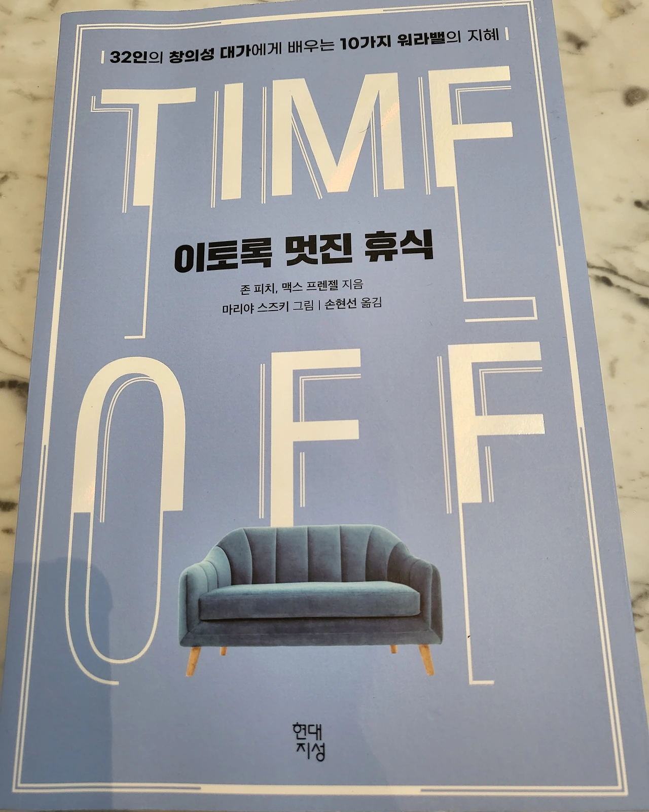 책에서 소개하는 ‘타임 오프’라는 개념은 ‘오티움’과 비슷했다. 시간이 생겨서 쉬는 휴식이 아닌 본인을 위한 의도적으로 만드는 휴식이 ‘타임 오프’이다. 그리고 ‘타임 오프’를 통해 우리는 재충전을 하고 만족감이 드는 일상을 만들어 나가면서, 일에서도 더 생산적인 결과물을 얻게 된다고 한다.