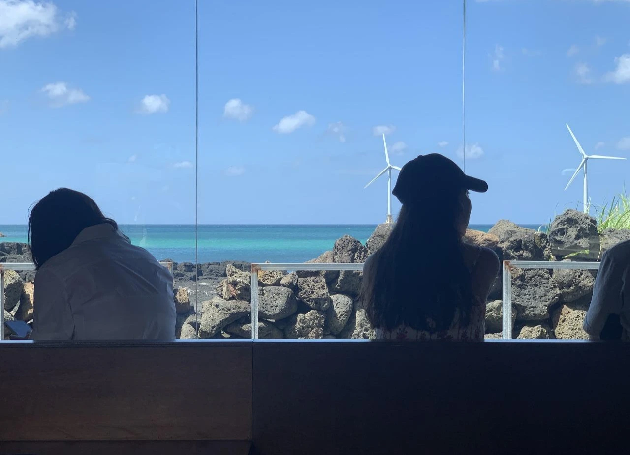 '손님들이 이 공간에 오셔서 남의 시선을 신경쓰지 말고 여러 오브제(바다, 마당, 사람들, 나 자신)들을 관망하다 가시길 바란다.'라는 의도를 가지고 공간을 구성하셨다고 한다. 마주보지 않게 배치된 '극장 의자'나 바깥채의 '일자 좌석'은 대화보다는 독서나 사색을 유도하며 넓은 창들은 자연이나 사람들을 바라보며 멍 때리기 혹은 관망을 유도한다. 필자도 바깥채의 앉아 바다를 보며 가만히 있었다. 평소와는 달랐지만 이내 익숙해 졌고 푸른 바다는 마음을 편안하게 했으며 편안한 마음은 '나' 자신을 관망하게 했다. 까페에 가서 항상 무언가를 했던 필자에게는 새로운 경험이였으며 생각의 휴식을 통해 마음의 회복 까지도 얻게 되었다.(거창하지만 그냥 편하게 멍 때렸다는 이야기)