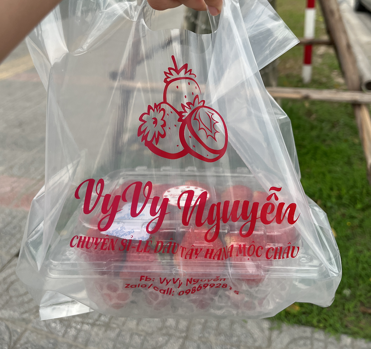 단시간만에 여권사진을 인화한 나는 가벼운 발걸음으로 걸어서 집에 오다가 길가에서 끝물인 딸기를 발견. 하빈이가 우리에게 오기 전, 하노이에서 5시간 정도 걸리는 딸기가 유명한 지역에 다녀왔던 게 생각나서 6만 동(한화 약 3천 원)에 한팩을 사들고 왔다.