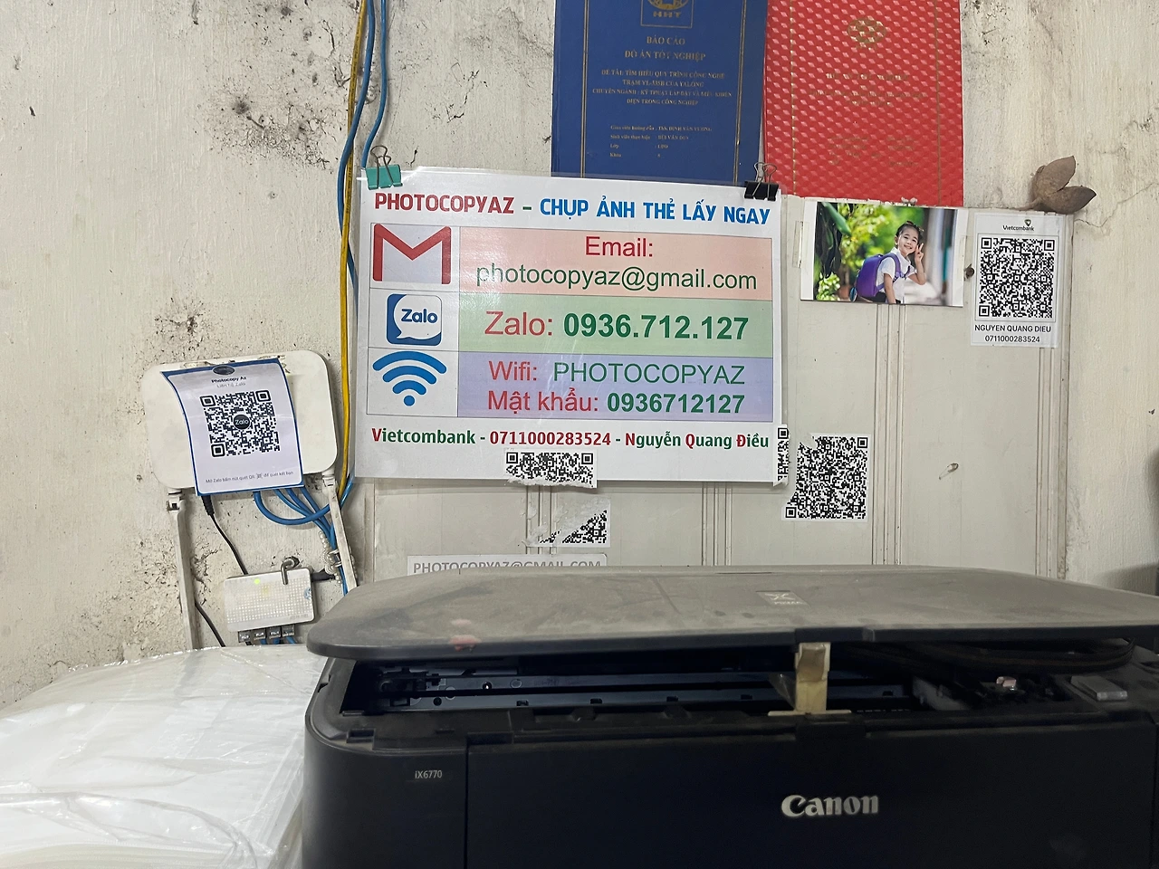 흐린 주말, 구글지도를 보며 도착한 포토카피샵. 대학가 제본집느낌으로 기다리고 있는 사람들이 많았다. 한번 쓱 훑어보니 베트남의 카카오톡인 잘로로 자료나 사진을 보내면 인쇄 및 인화를 해주었다.