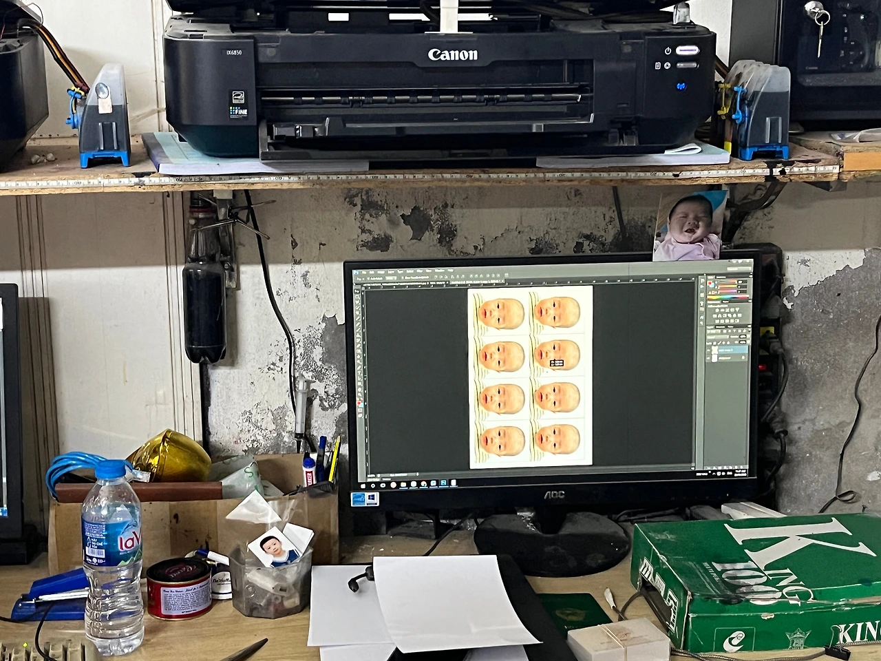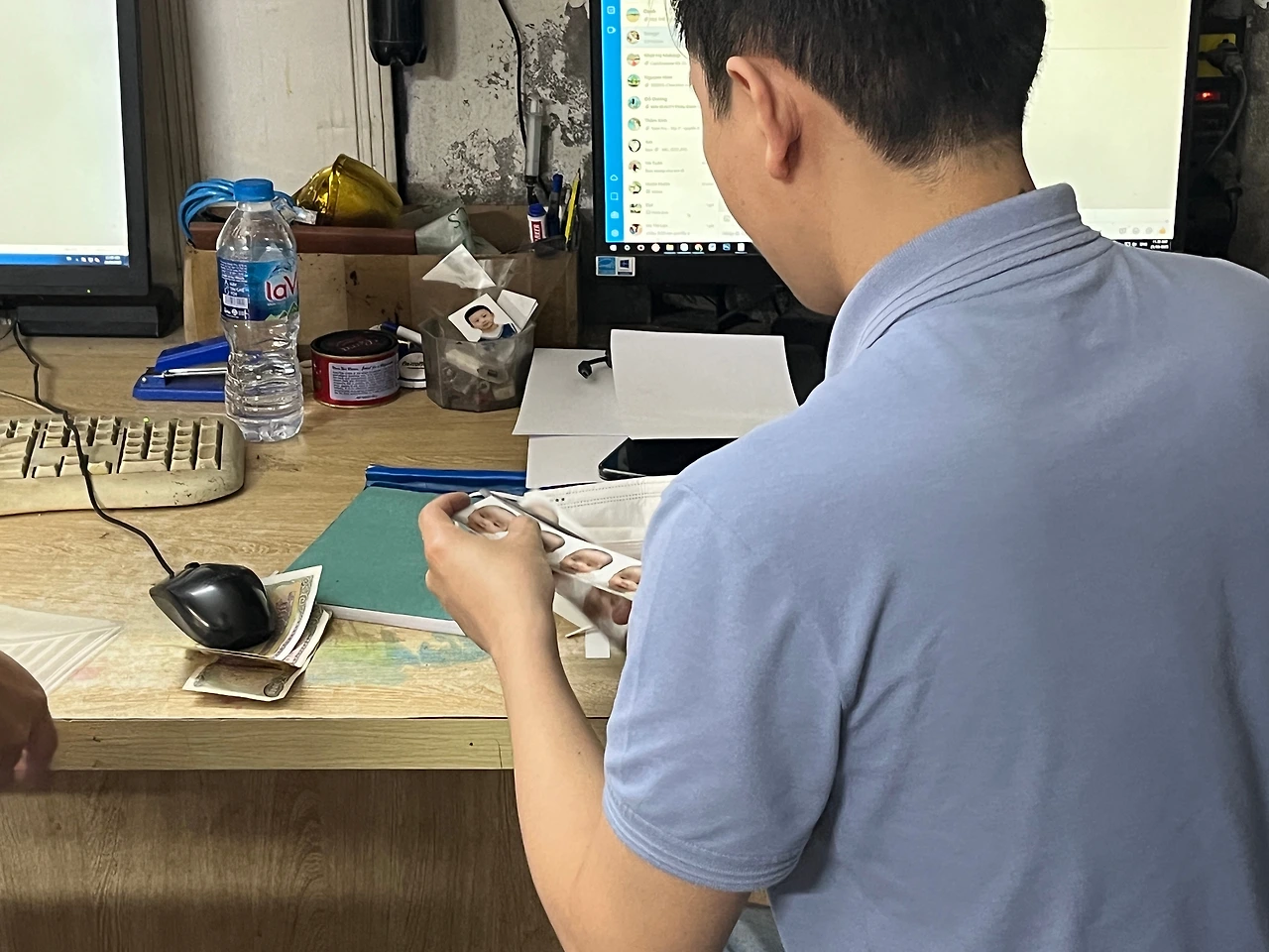 나도 바로 하빈이 여권 사진을 보냈고, 사이즈와 필요한 장수를 이야기하니 바로 편집하더니 사진이 나왔다. 인화된 사진 8장을 가위로 쓱쓱 자르는 사장님. 내가 얼마냐고 물으니 35,000동(한화 약 1800원)이란다. 찾아온 보람이 있는 가격. 이럴 때마다 베트남에 살고 있다는 걸 다시금 실감한다.