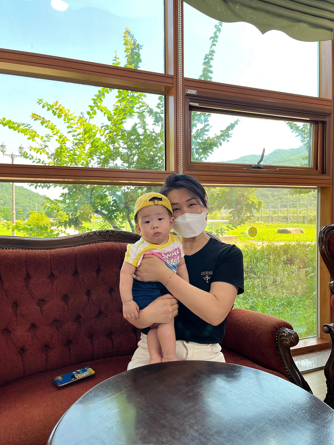 하빈이 이모할머니가 동대구역으로 나와주셨고 우리는 합천으로 향하게 되었다. 차를 타자마자 하빈이는 분유한통을 먹고 큰일을 보았지. 그래서 들리게 된 휴게소. 큰일 처리를 하고 밖에서 커피를 마시는데 파란 하늘에 푸르른 풍경이 근심걱정을 모두 빼앗아 가버렸다.