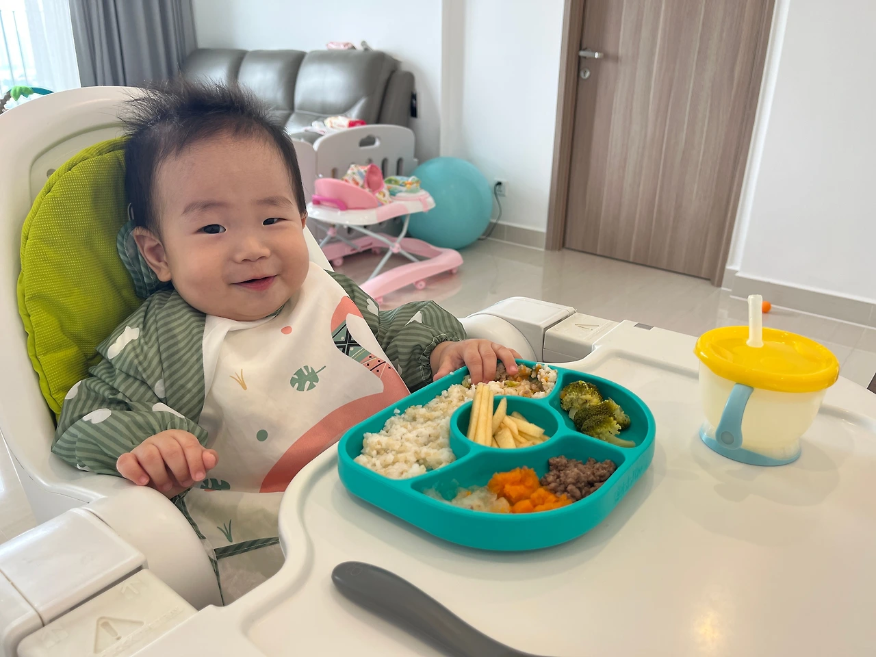 하빈이는 9개월 되기 3일 전부터 세끼를 먹기 시작했다. 원래 더 일찍 시작했어야 하는데 한국 가는 일정이 맞물려 돌아와서 시작하게 되었다.