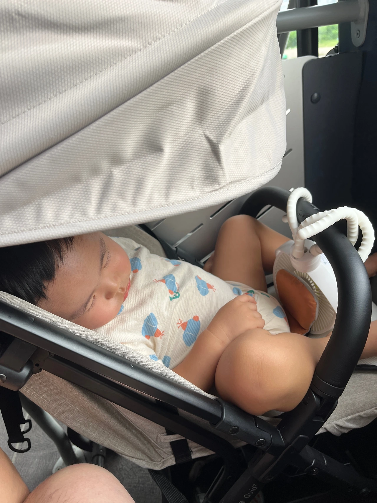 셋이서 아침을 먹고 느릿느릿 어디 갈까 준비를 하다가 9시가 넘어버린 시간. 일단 가방을 대충 챙겨 단지 내 셔틀을 타고 쇼핑몰로 향했다. 커피를 사들고 쇼핑몰 바로 앞 공원을 갈까 하다가 날씨가 너무 더웠다. 그래서 공원 앞 시내버스 기점에 버스가 줄줄이 서있는 걸 보고 내가 ‘우리 버스 탈까?’하고 제안했다. 남편은 오케이! 했고 우리는 유모차에 탄 하빈이와 함께 버스를 탔다.