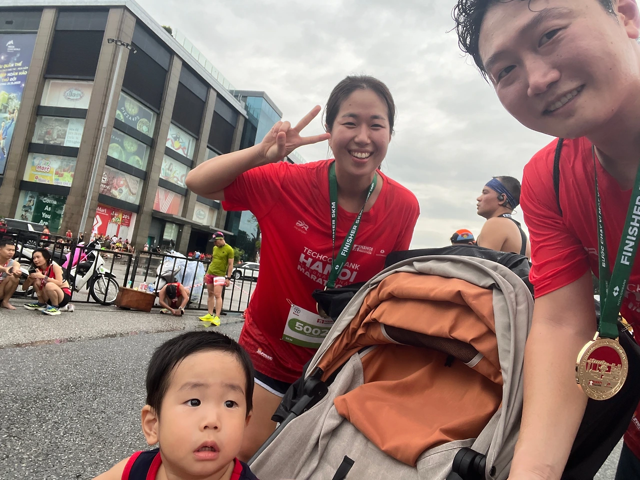 아기가 유모차에 타고 있어 참가자들은 뛰면서 다 한 번씩 보고 격려를 하며 지나갔다.