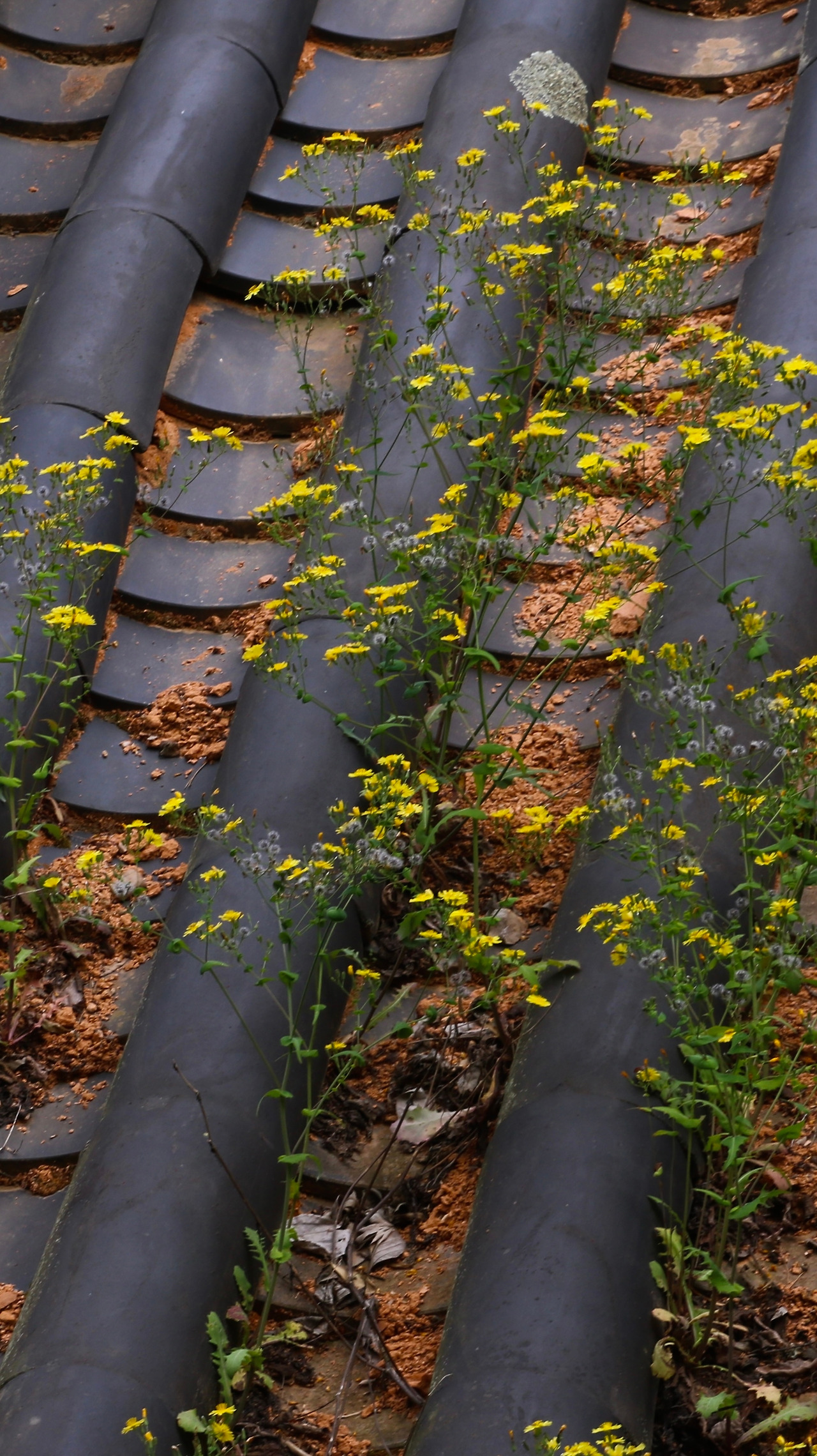기와 위에 꽃이 피어 있는 지붕이 제법 많았다.