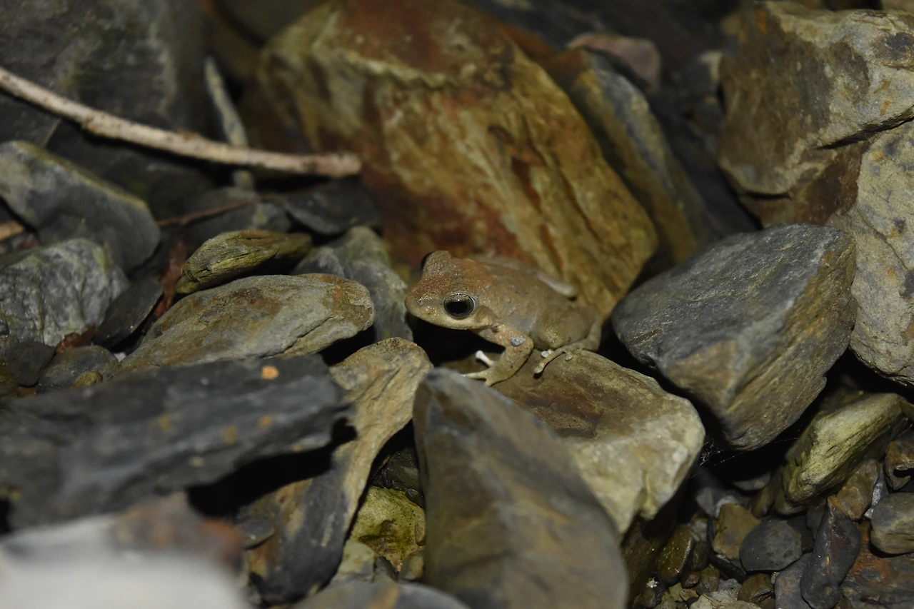 식사 후, 곧장 랜턴과 카메라를 챙겨 개구리가 많았던 장소로 갔다. 역시 어린 친구들은 나보다 더 빨리 이미 자리를 잡고 개구리들을 관찰하였다. 탑에 탑을 쌓고 있는 개구리들은 전부 Hylarana latouchii라는 개구리였다. 정말 발에 밟힐 정도로 개구리가 많아 조심 또 조심해야 했다. 그리고 작은 연못 가운데에 돌탑에는 온통 개구리들로 가득했다.